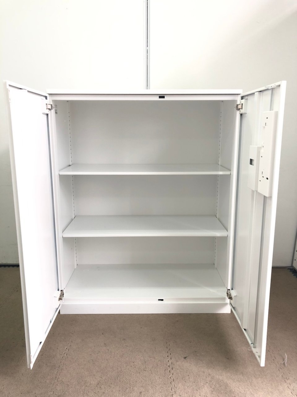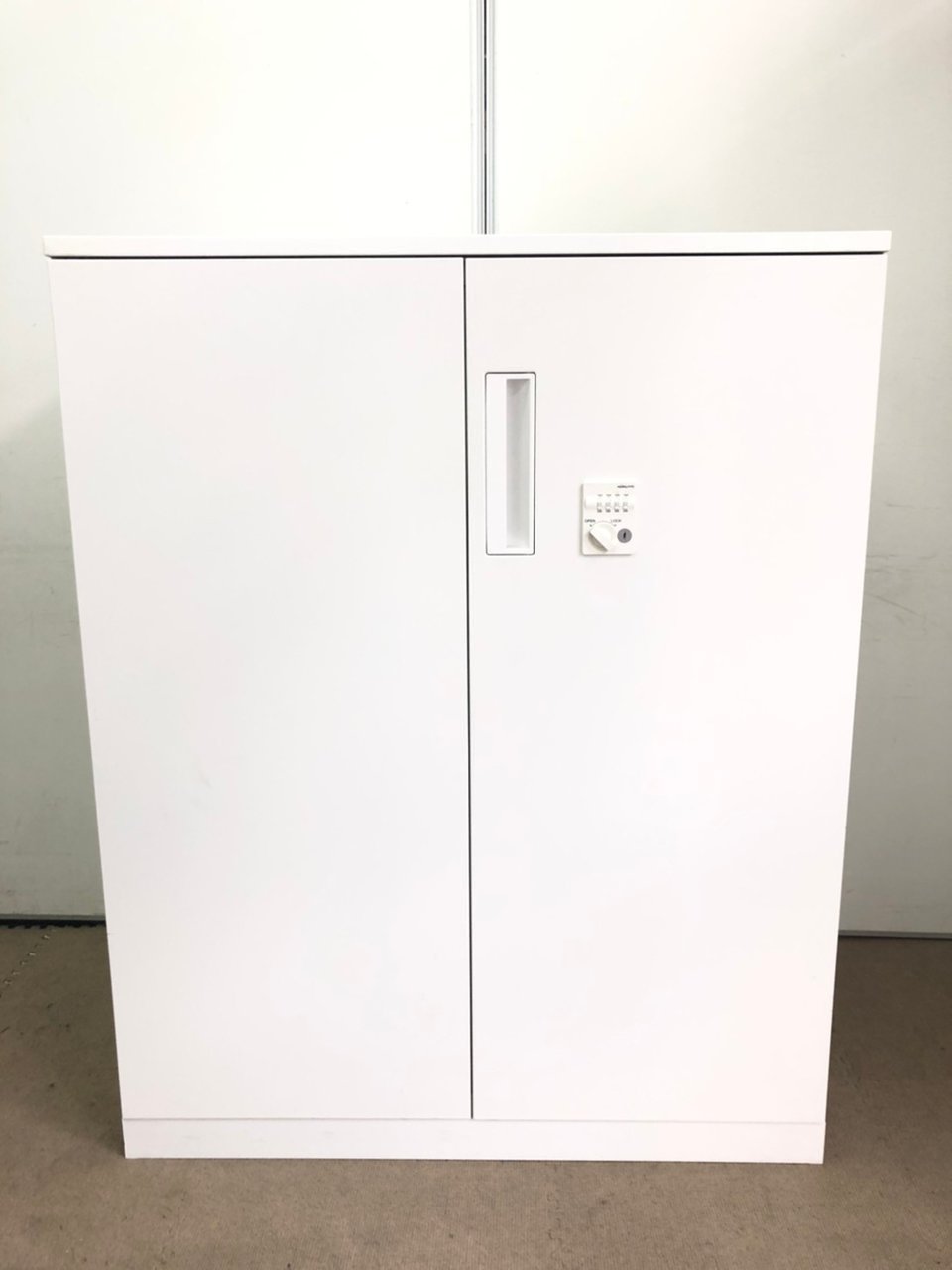 【収納物がひとめで分かる両開き戸タイプ!】■コクヨ(KOKUYO)製 エディア(EDIA)シリーズ 両開き書庫 ローキャビネット H1130㎜ ■天板・ベース付 ■ホワイト ■シリンダー錠