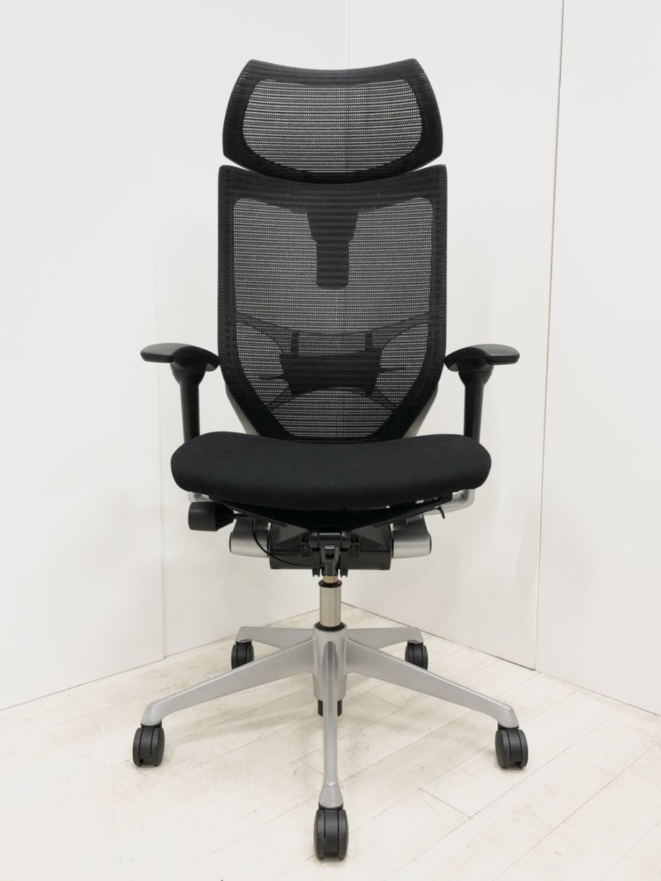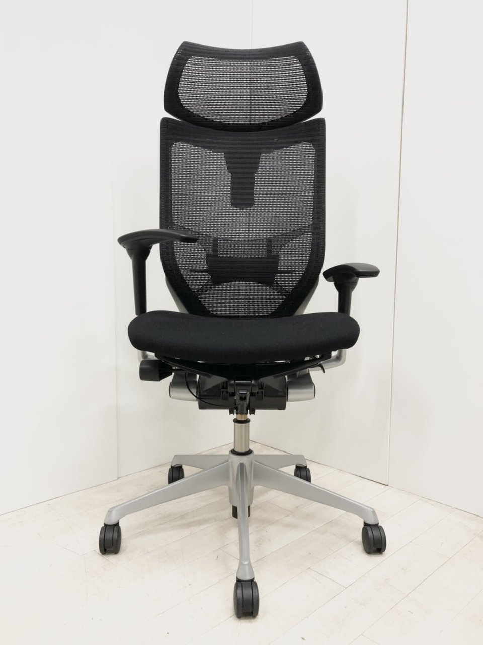 【座面メッシュ】スタンダードメッシュ ブラックフレーム アームレスト付き ヘッド付きオススメ(おすすめ) 大人気 ・Okamura/オカムラ ・Baron/バロン ※横浜本店撮影画像※