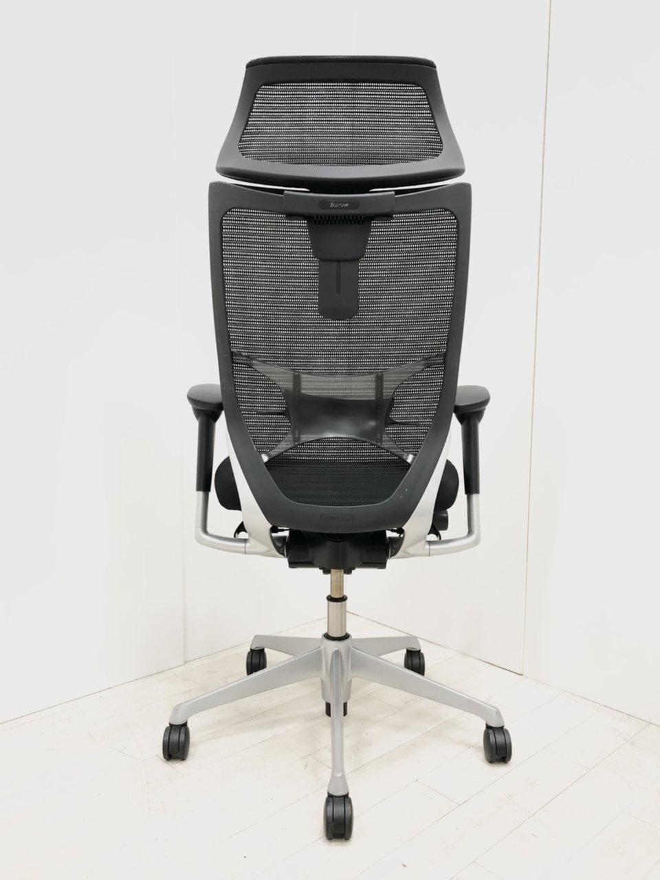 【座面クッション】スタンダードメッシュ ブラックフレーム アームレスト付き ヘッド付きオススメ(おすすめ) 大人気 ・Okamura/オカムラ ・Baron/バロン ※横浜本店撮影画像※