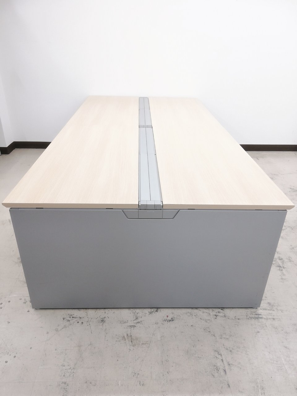 【倉庫在庫品】オカムラ プロユニットフリーウェイ フリーアドレスデスク W2800×D1400 天板:ブライズウッドライト 脚:ホワイト 4名掛け想定 1人当たりW1400のゆったりサイズ