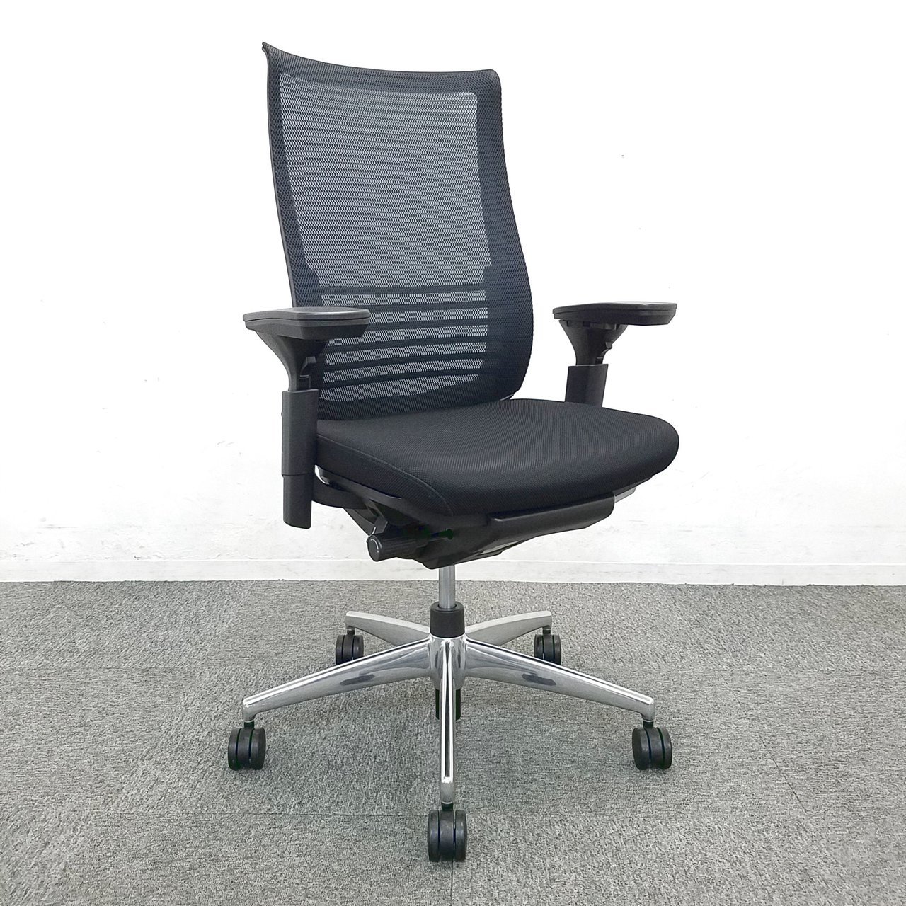 前傾機能付き高級チェア!重厚感のあるブラック×ポリッシュ仕様 応接室や会議用にもおすすめ! ■コクヨ/ベゼル/ブラック テクスチャードメッシュ