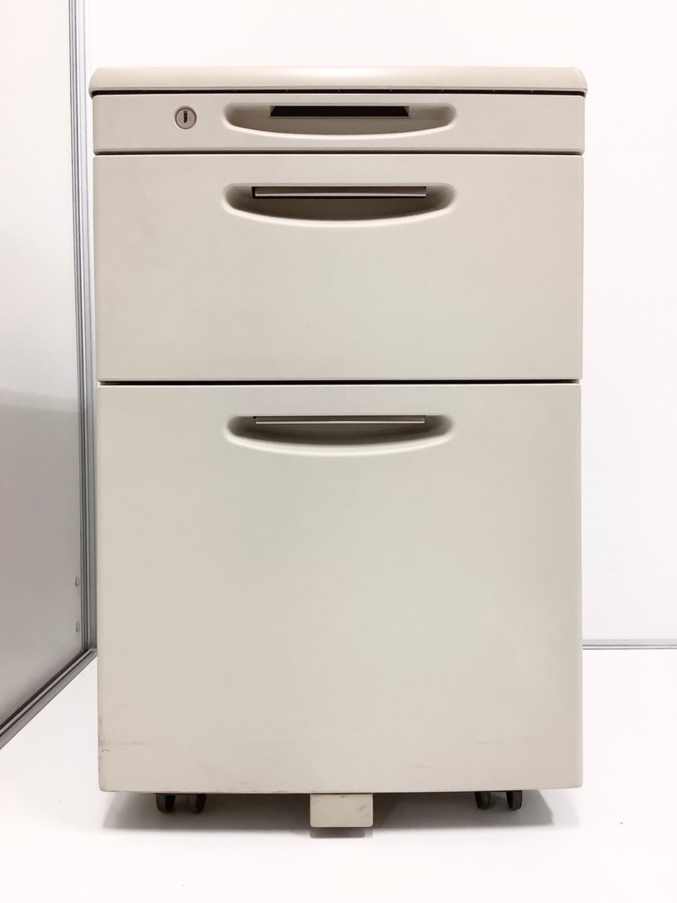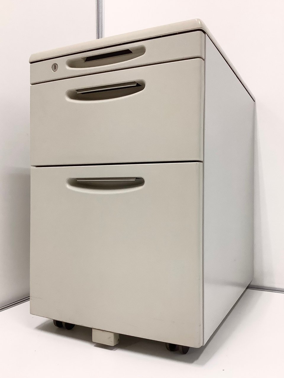 【天板の把手とキャスターで移動がらくらく!シンプルでスタンダードな3段ワゴン!】■オカムラ(okamura)製 SDシリーズ 3段ワゴン デスクインワゴン H610mm ■ニューグレー ■シリンダー錠【2510】弊社使用欄【A01038495】