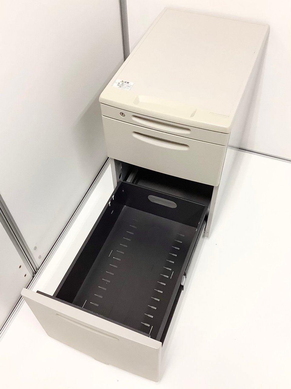 - 一部不具合ありその脇机・ワゴンの本来の効用を果たすための機能以外の一部が使用不可な状態。(例、引出が開閉しづらい、 キャスターロック機能使用不可、ラッチ不良 等がある。)