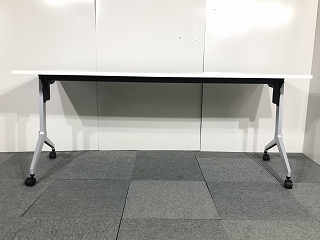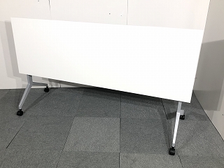 使い勝手抜群!天板を跳ね上げて収納ができるスタックテーブルが入荷!幕板付きで安心! ◆内田洋行/プラッテ(Platte)/ホワイト 横幅1500mm(奥行450mm)フラップテーブル