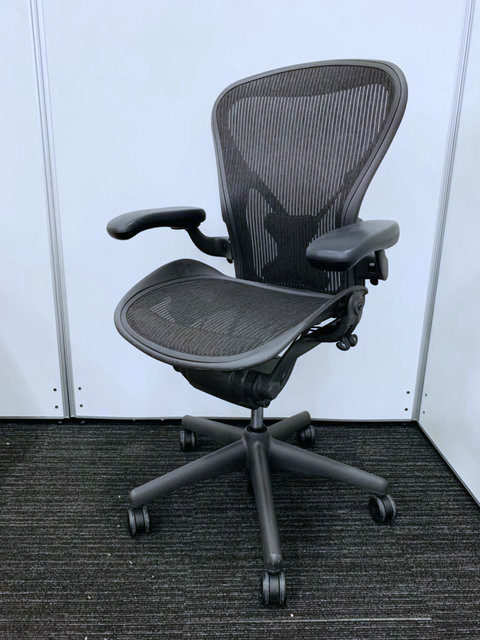 【スタイリッシュなデザインに快適な座り心地!】■ハーマンミラー アーロンチェア Bサイズ 固定肘 ランバーサポート無 ※キズあり・劣化ありのためお安く!【A01029474】