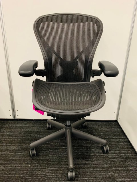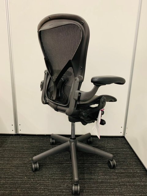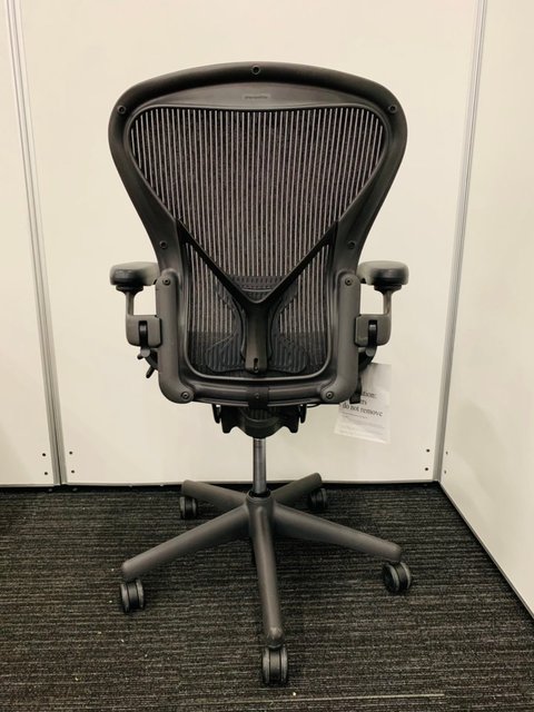 【ワーキングチェアの名作!】■ハーマンミラー アーロンチェア 固定肘 Bサイズ スタンダード ランバーサポート付 ※キズあり商品のためお安く! 【Herman Miller Aeron Chair】A01029474