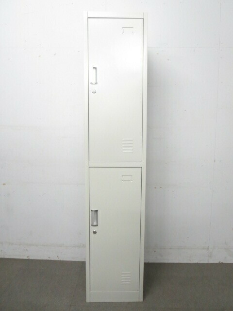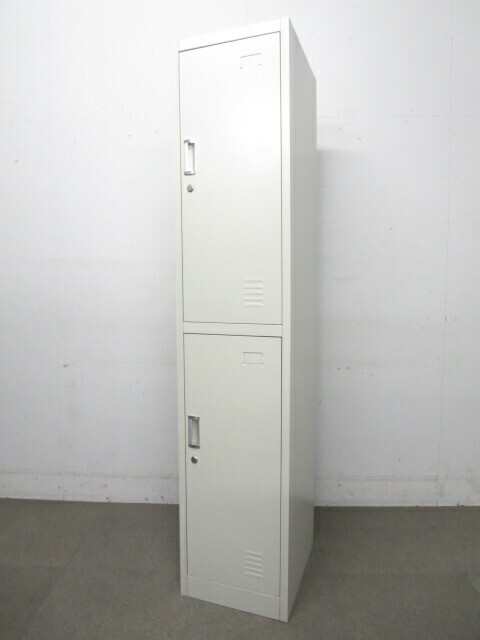 【省スペースに設置できる!】■2人用ロッカー グレー 上下2段 コンパクト設計【ノーブランド品】- 川崎店