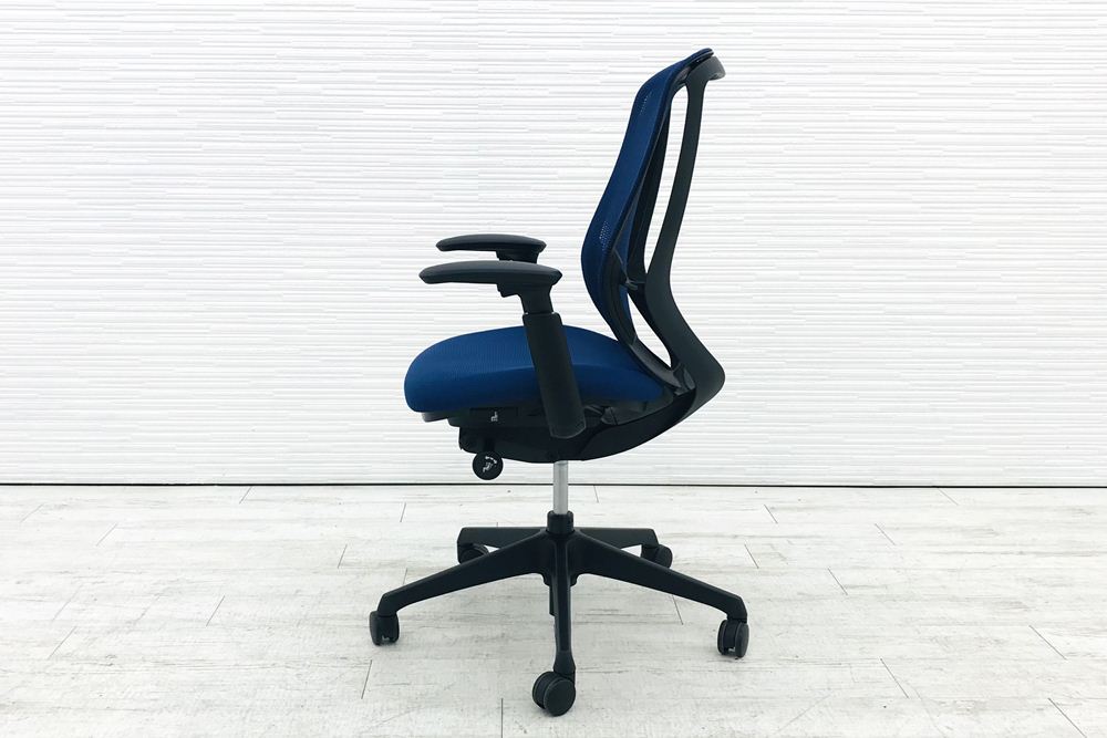【新品ヘッドレスト交換済み】オカムラ/シルフィー/ブルー/可動肘