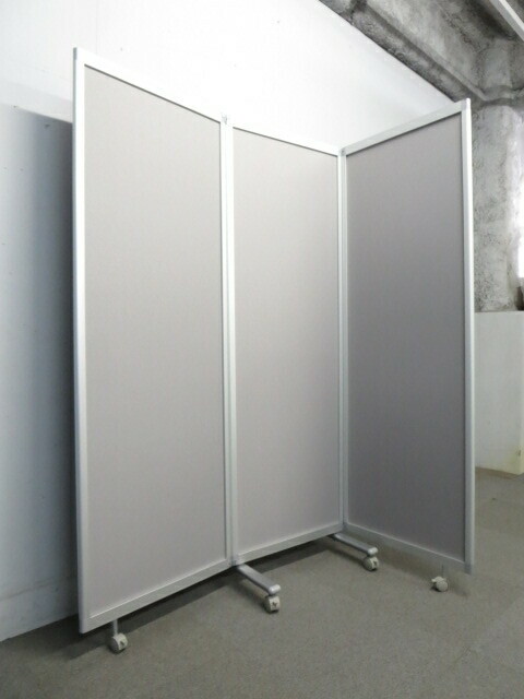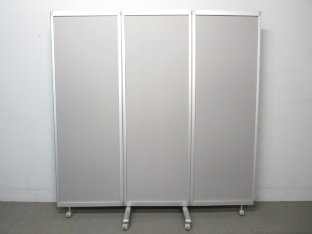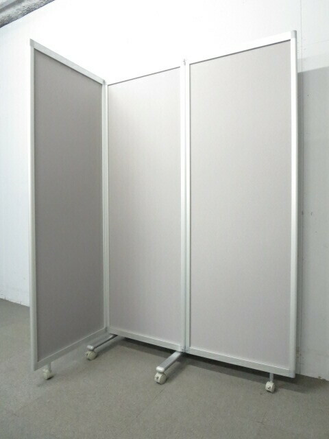 【訳あり特価品!】■三つ折りパーティション グレー W1800(600×3)×H1800mm キャスター付 3連 折りたたみ【キズ・ヘコミあり】- 川崎店