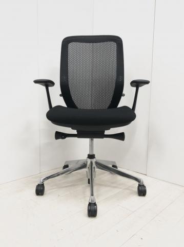 【限定1脚】【三次元曲面が身体にフィット!前傾チルト機能付き大人気メッシュチェア!】■オカムラ(okamura)製 シルフィーチェア(Sylphy) 肘付きハイバック ■背面メッシュ ■可動肘 ■ブラック×ブラックシェル ■ランバーサポート付き