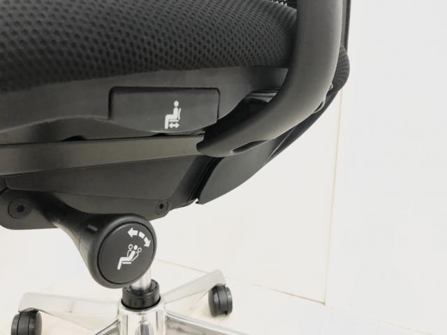 - 座面右下のダイヤル操作で、リクライニングの強弱調整が行えます。これまでのダイヤル式よりも、少ない回転数で、最弱?最強の調整が可能です。