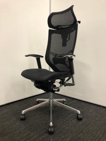 【オフィスの執務室、会議室におすすめ!】■オカムラ(okamura)製 バロン(Baron)チェア 肘付き ハイバック ■背・座面メッシュ ■可動肘 ■ヘッドレスト付き ■ブラック【硬めの座面が大人気!国産メッシュチェアの代表格!】