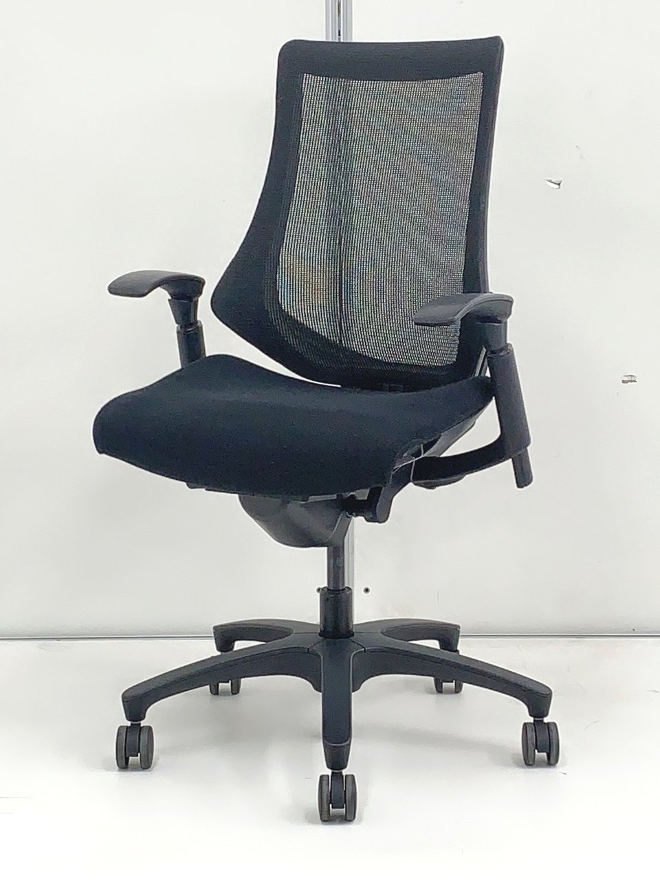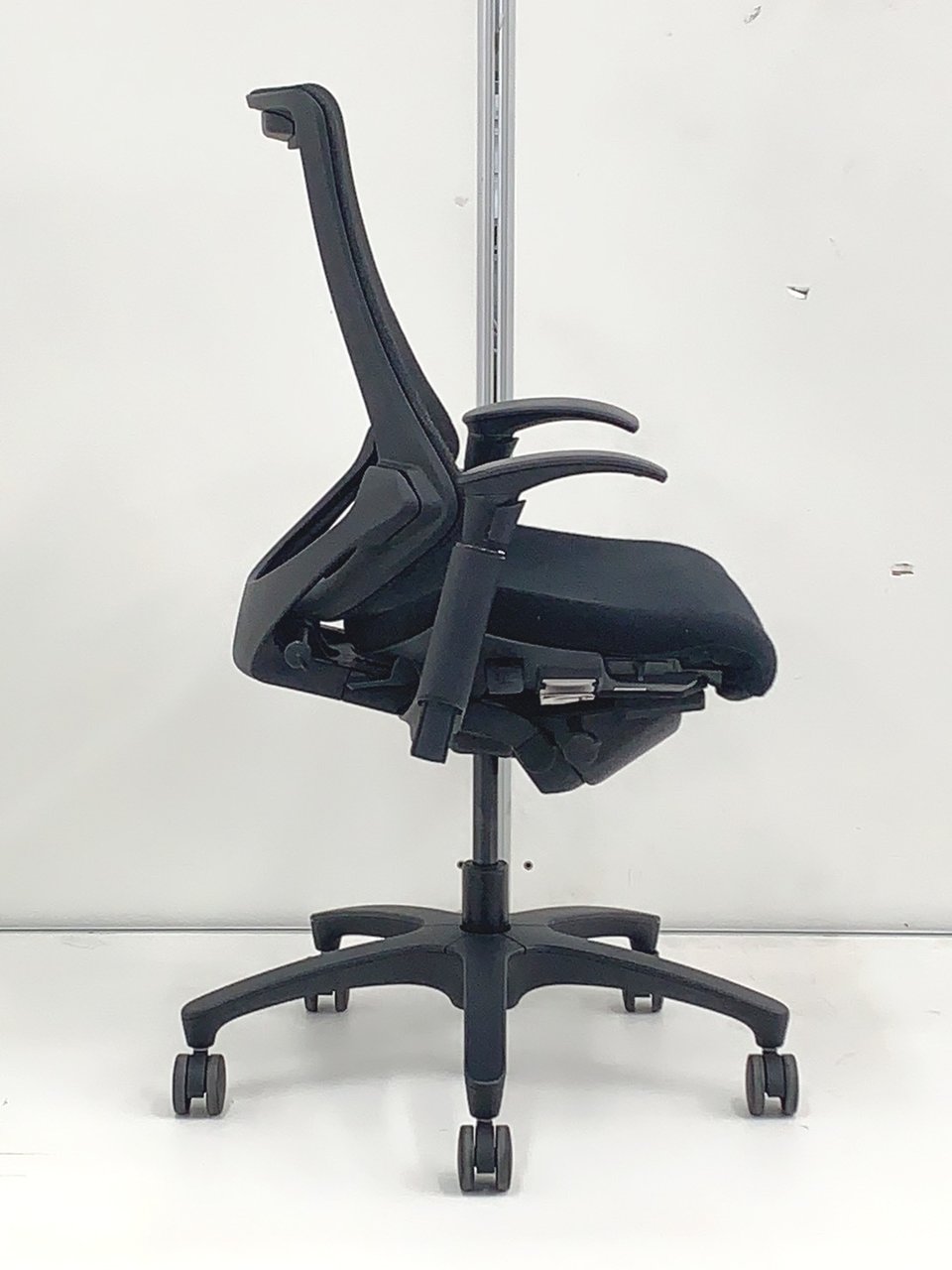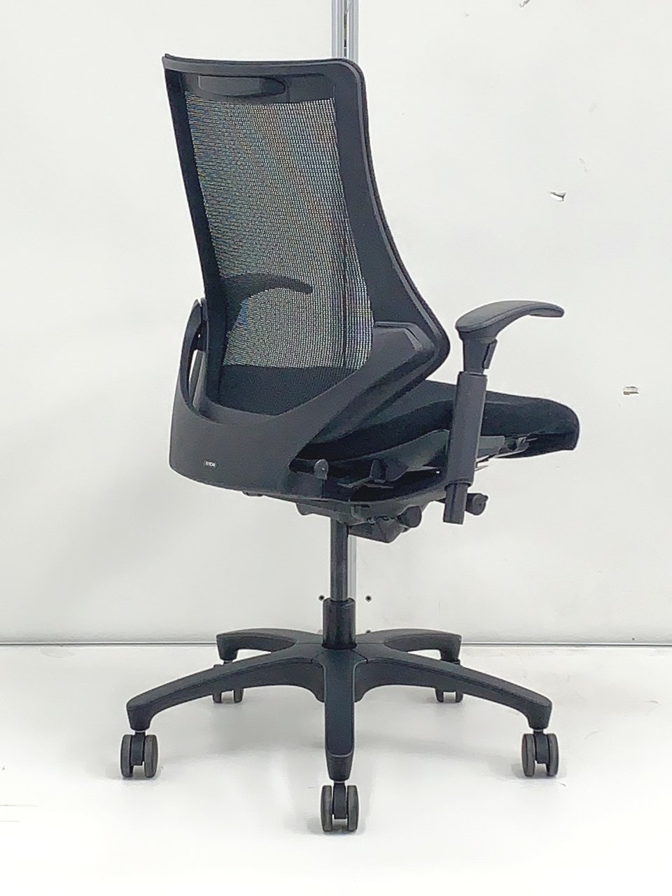 【三次元フォルムが腰にフィット!】希少なエラストマータイプ! ■イトーキ製 エフチェア 肘付 ブラック ハイバック ■姿勢の変化にフレキシブルに対応!