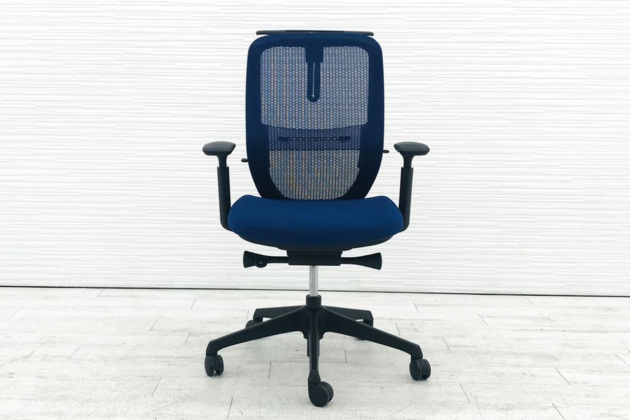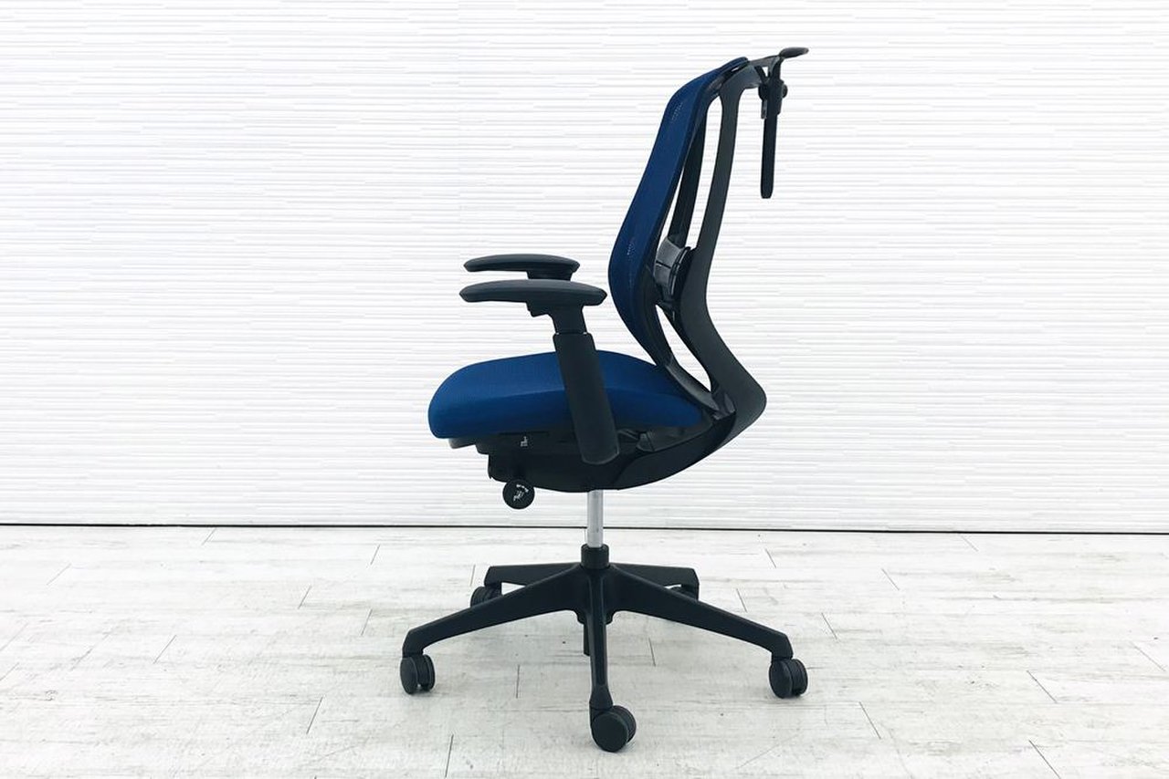 【新品ヘッドレスト交換済み】オカムラ/シルフィー/ブルー/可動肘