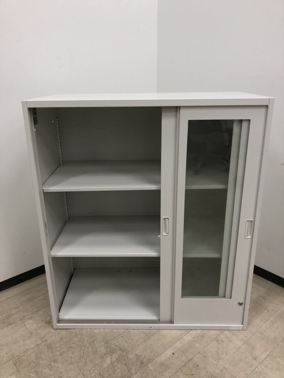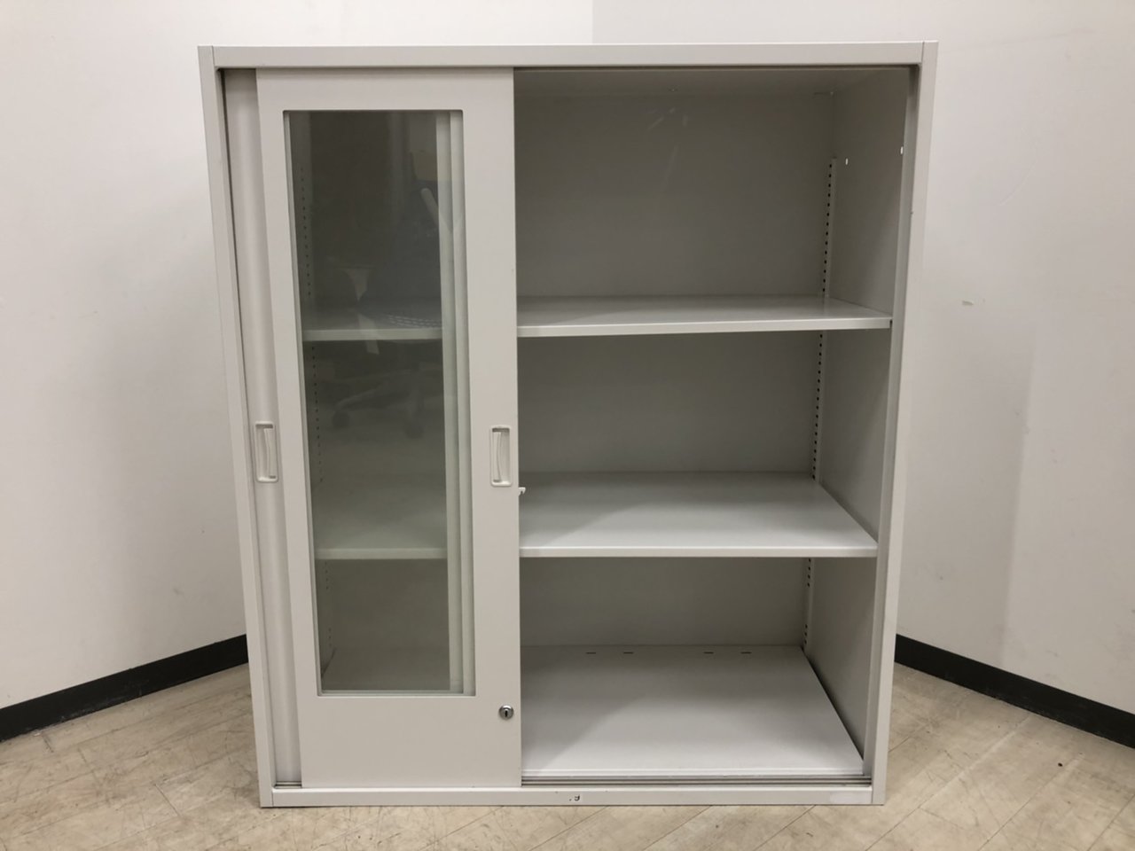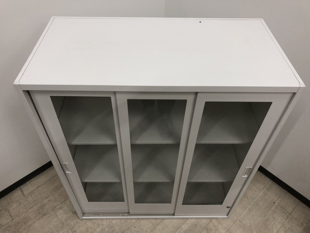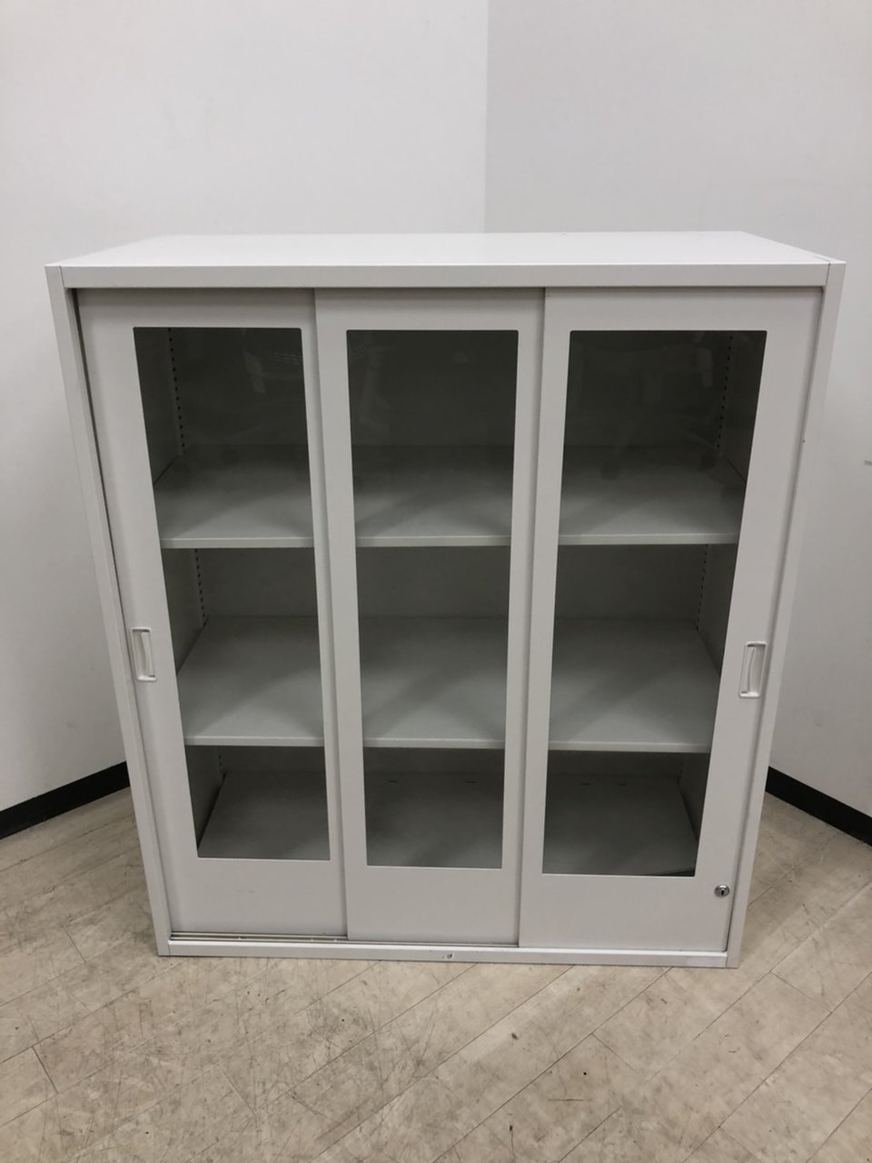 【イトーキ製の開閉スペースを確保した人気のキャビネット!】■3枚引き違いキャビネット ■イトーキ ■シンライン ■幅800mm×奥行き450mm×高さ1100mm 鍵付き書庫 オフィスバスターズ東大阪店