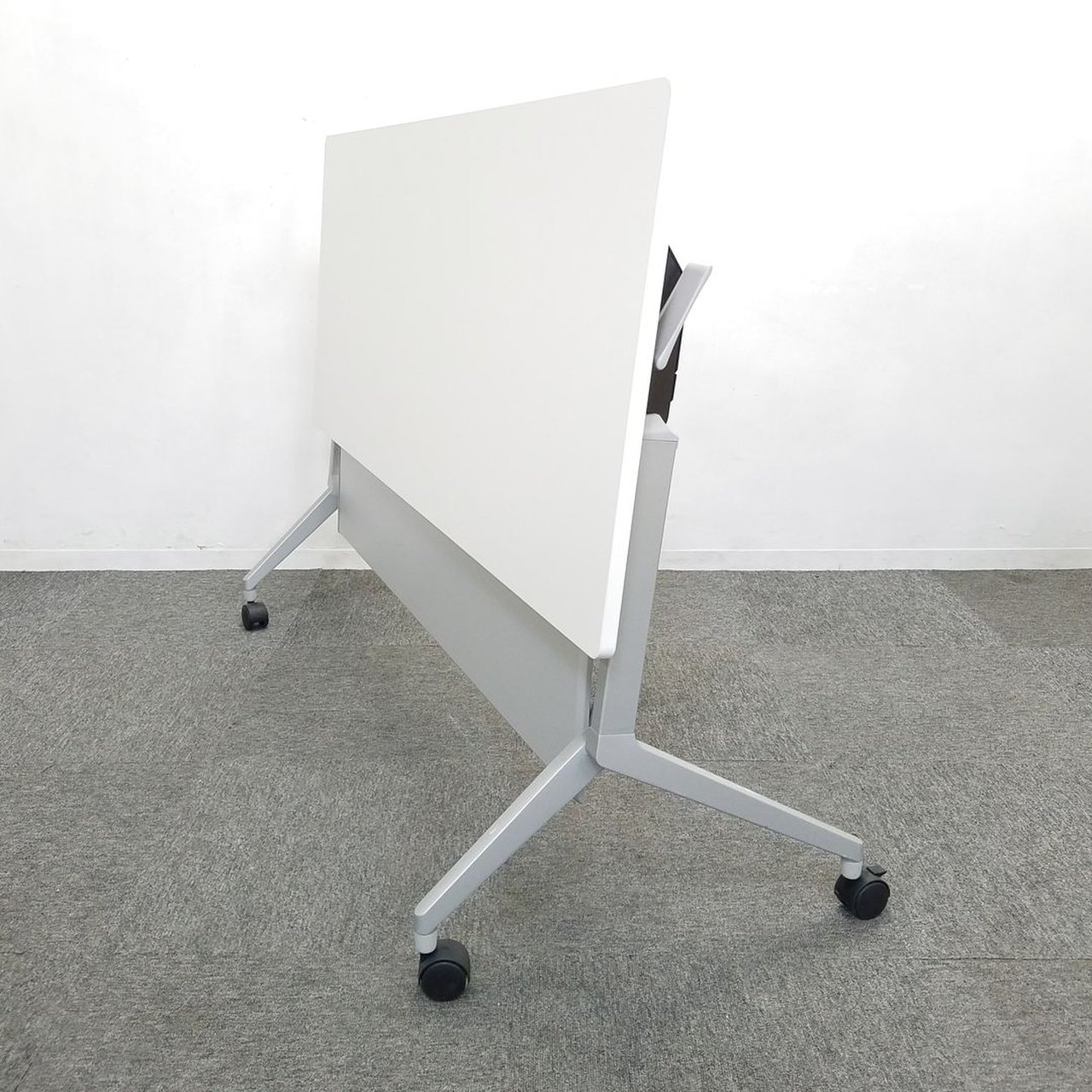 【折りたたみ収納が秀逸!スタイリッシュなデザインで高品質!】■コクヨ(KOKUYO)製 リーフラインシリーズ サイドスタックテーブル フラップタイプ W1200×D450㎜ ■キャスター・幕板付 ■ホワイト