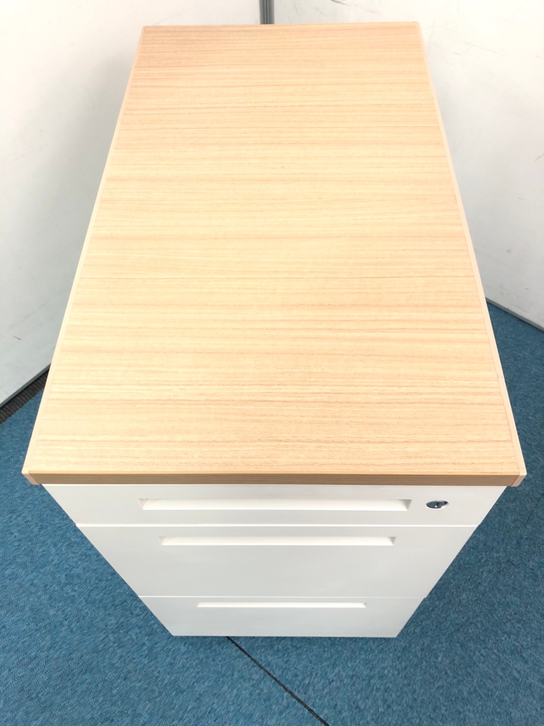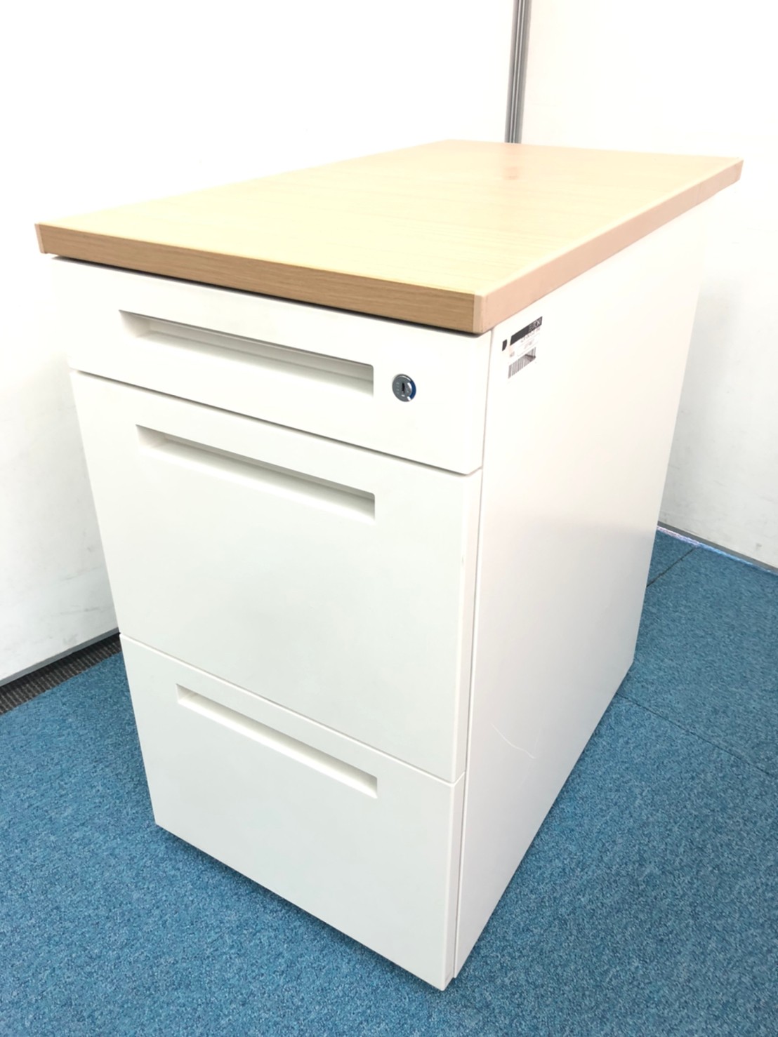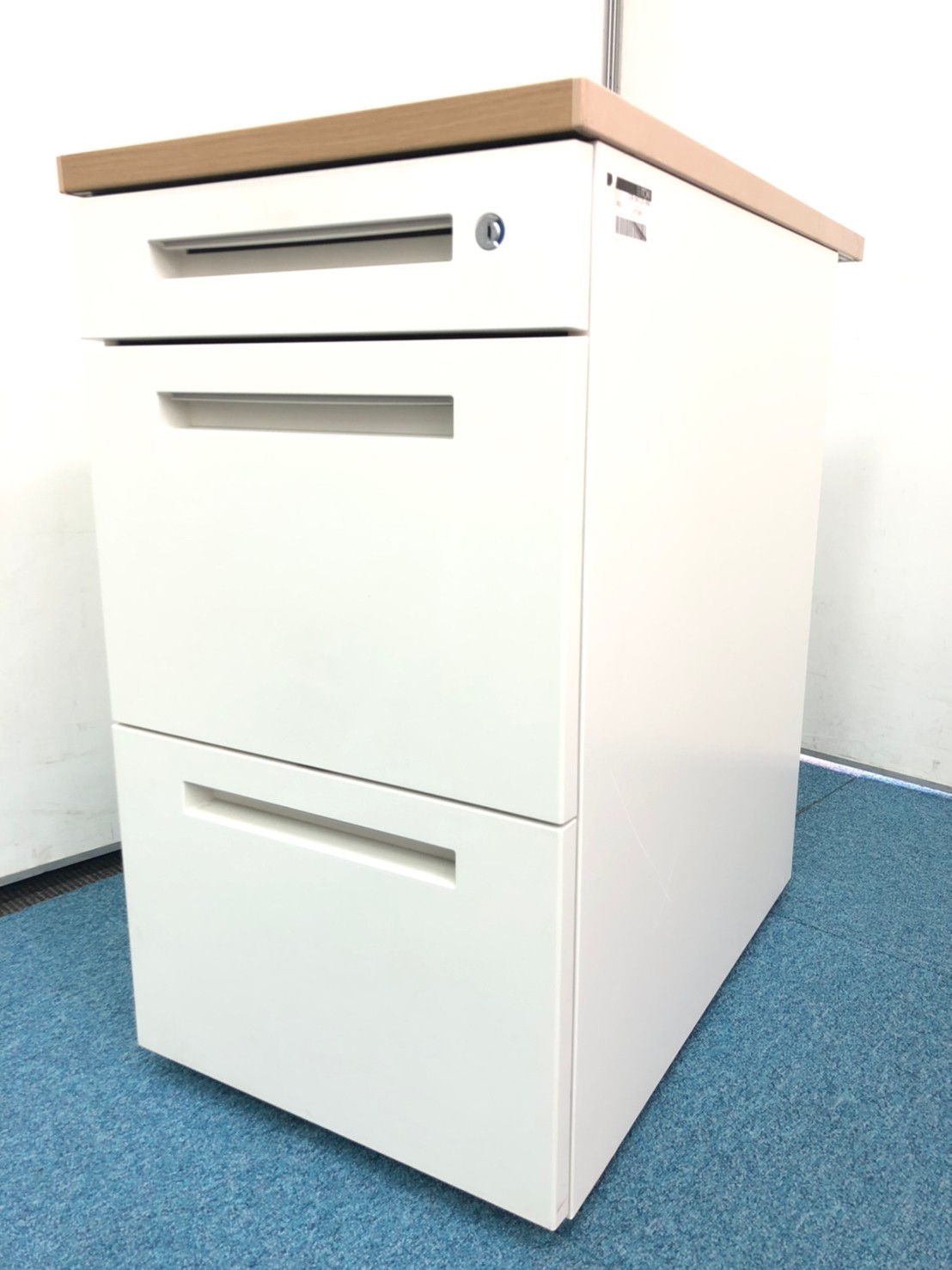【在庫入替セール品】【デスク横に置いて収納と作業スペースを同時に確保!人気のナチュラル調天板!】■イトーキ(ITOKI)製 CZRシリーズ 3段脇机 H720mm ■ナチュラル木目調天板 × 本体 ホワイト ■シリンダー錠 【弊社使用欄:A01027735】