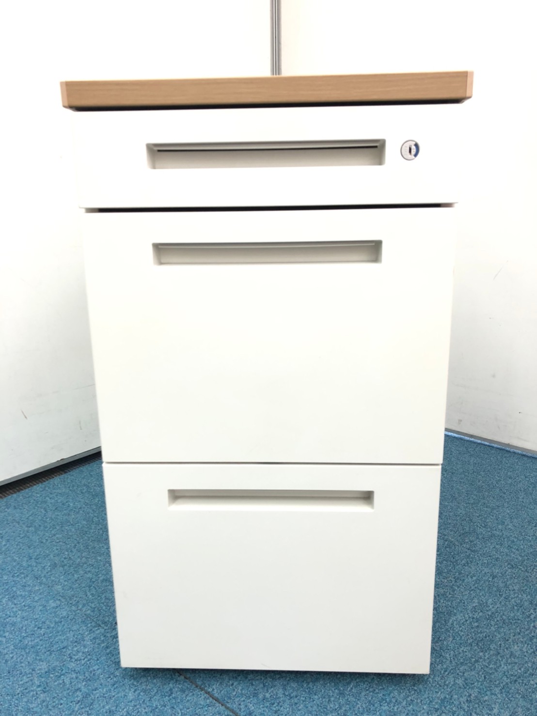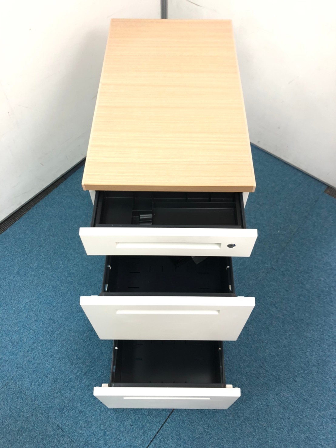 大人気ホワイトカラーの3段脇机です!