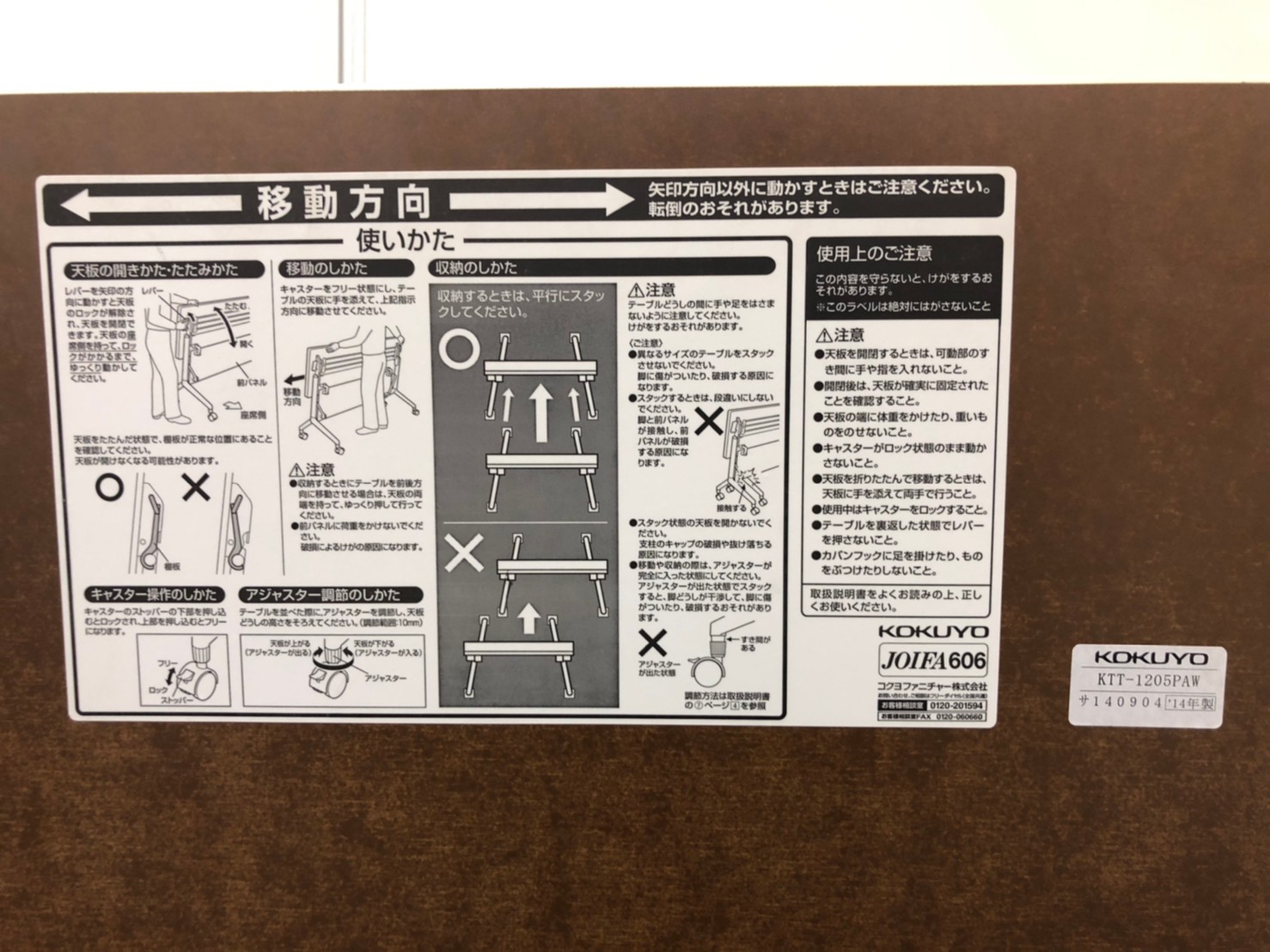 - 壊れている天板歪み、アジャスター無し、キャスター使用不可のようにそのテーブルの本来の効用を果たすための機能に不具合がある。