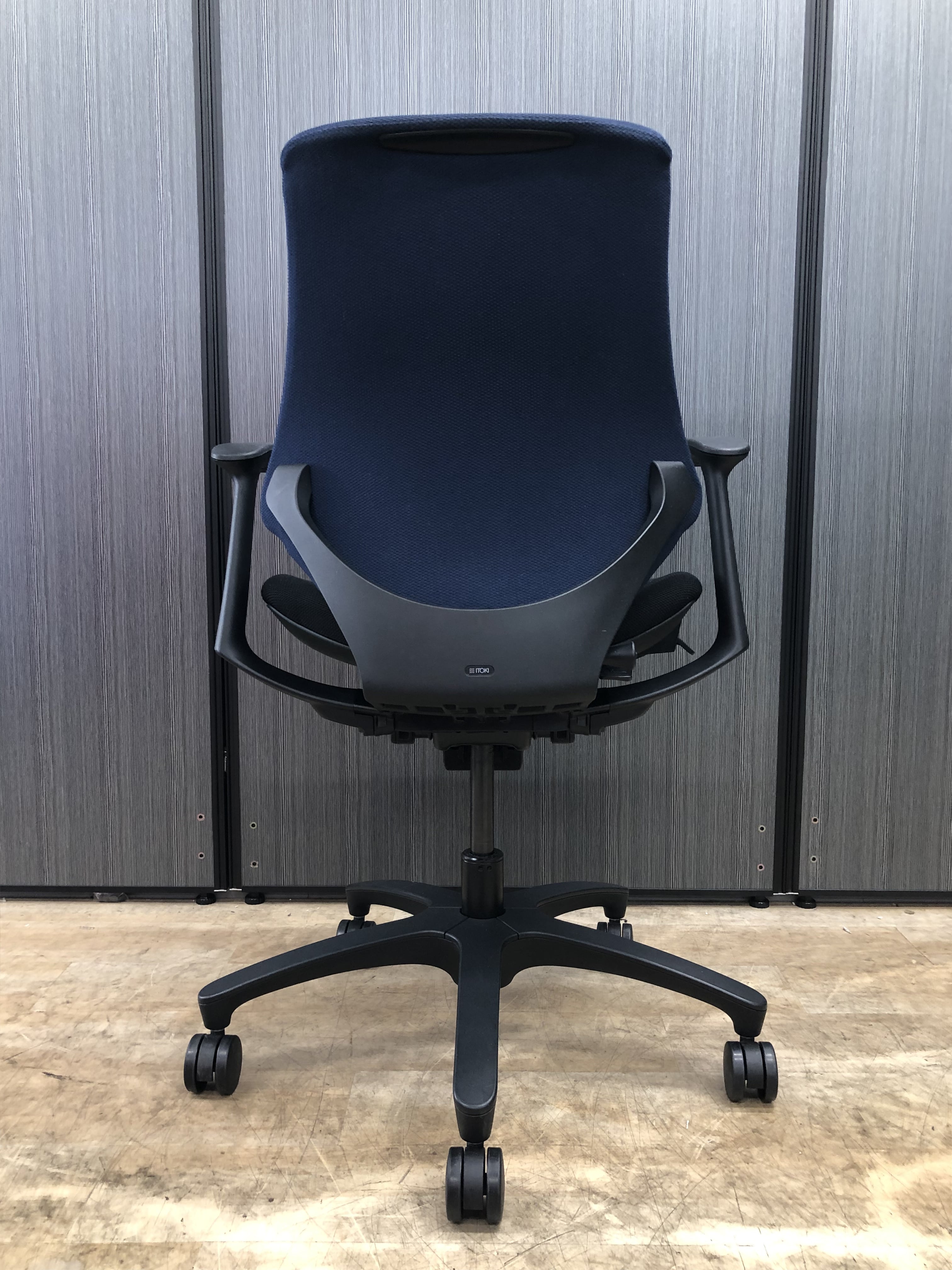 【姿勢の変化にフレキシブルに対応!スタイリッシュなデザインのメッシュチェア!】■イトーキ(ITOKI)製 エフ(F)チェア 肘付ローバック ■背面:ネイビーブルー/座面:ブラック ■固定肘