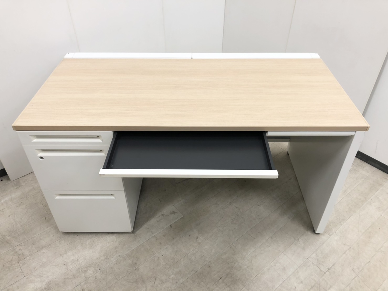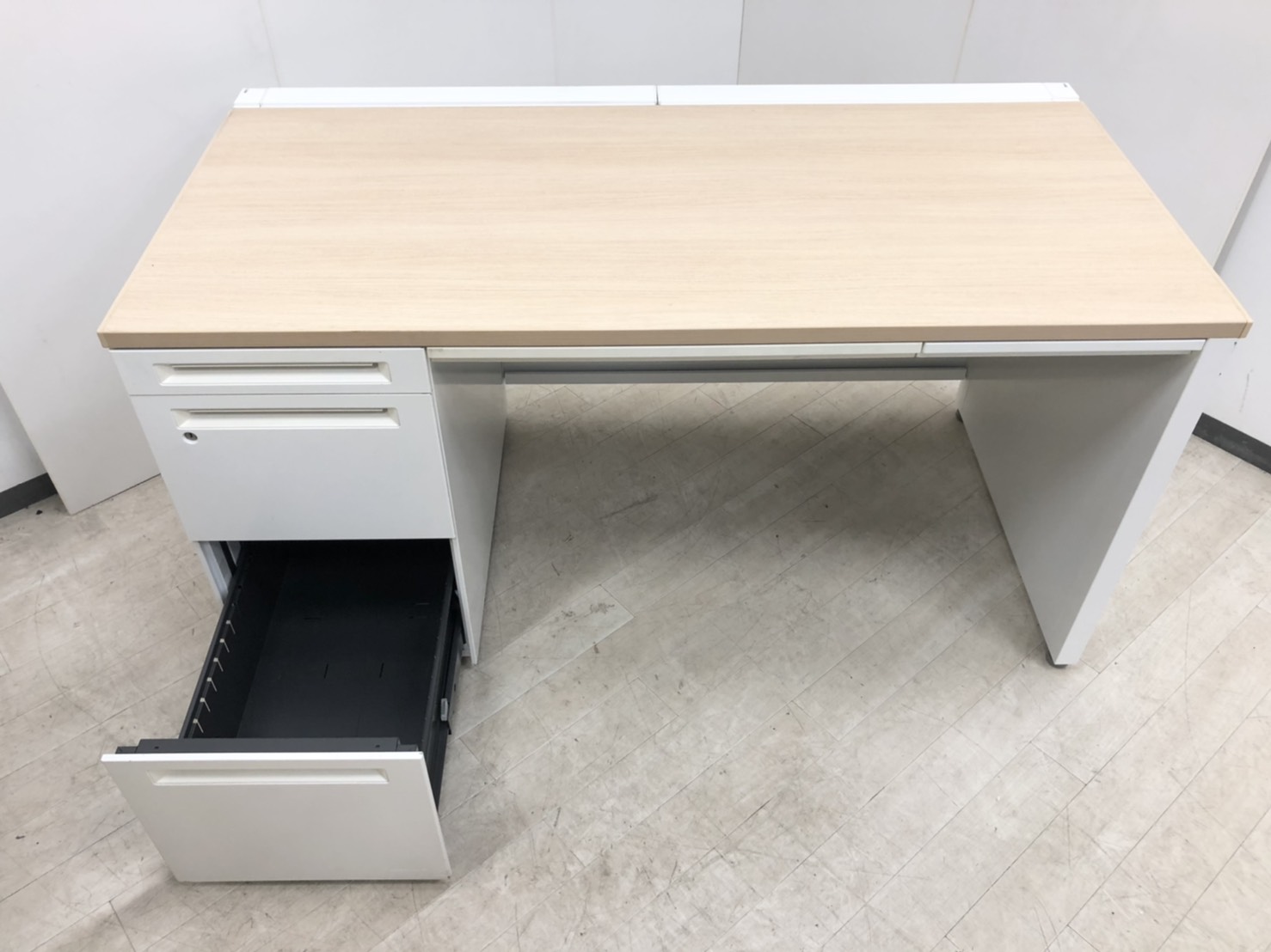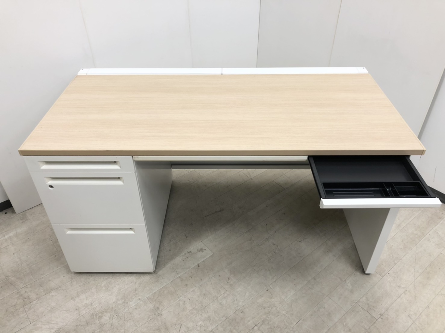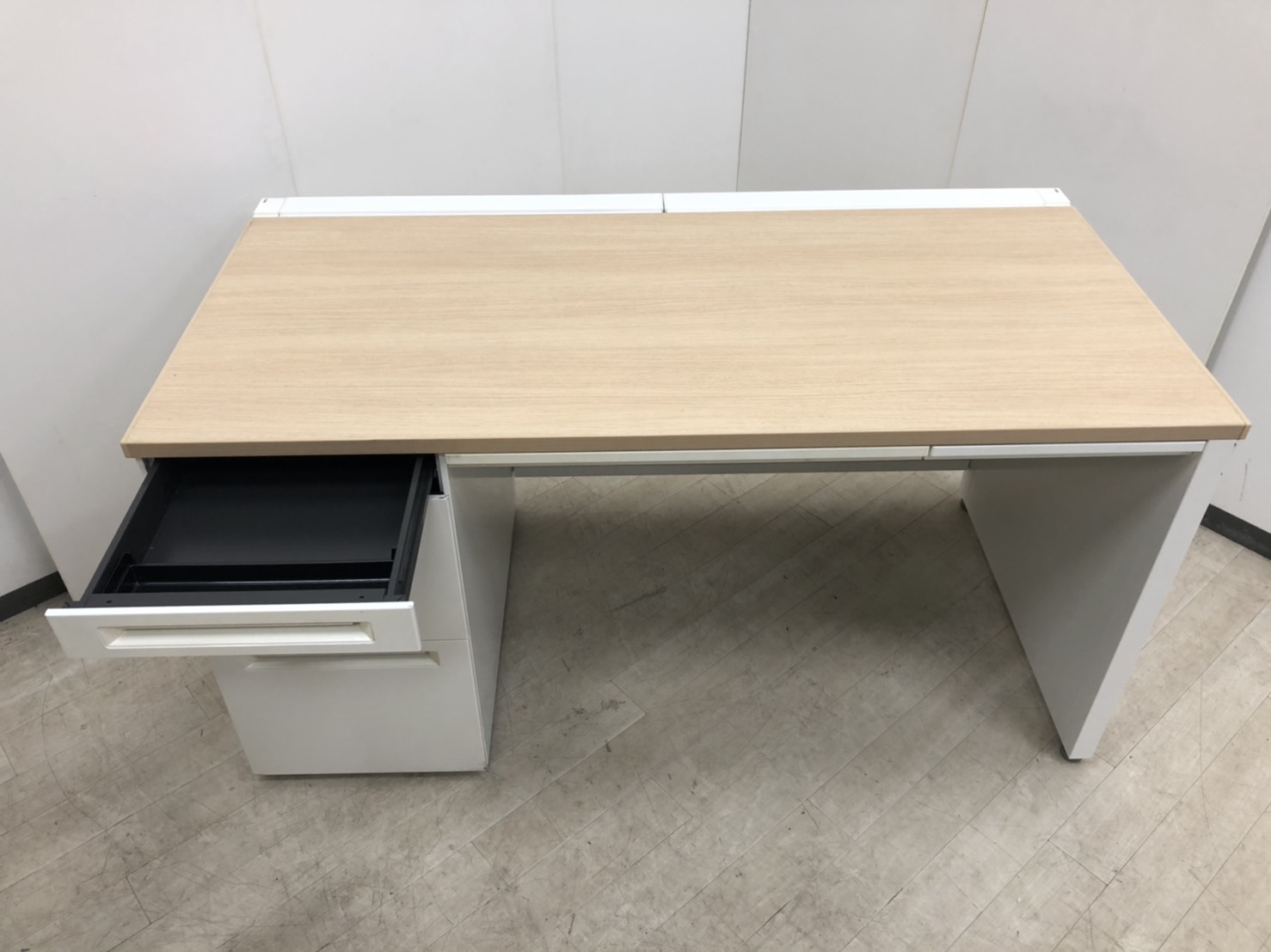 【珍しい左袖タイプ!】オカムラ/アドバンス/片袖机/ナチュラル/W1400D700H720- つくば店