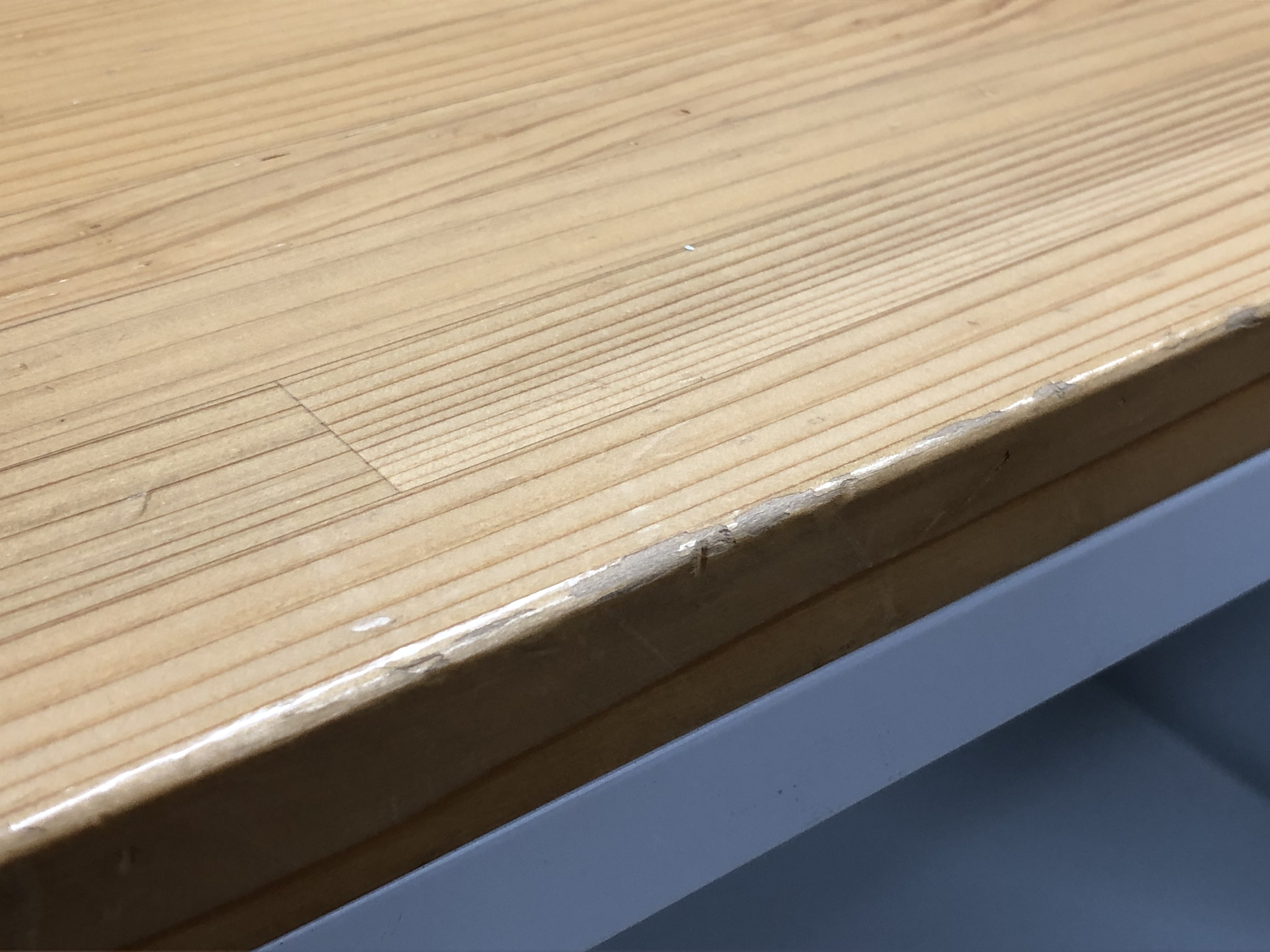 天板が軟らかい木材の為、打痕やキズが付いています。