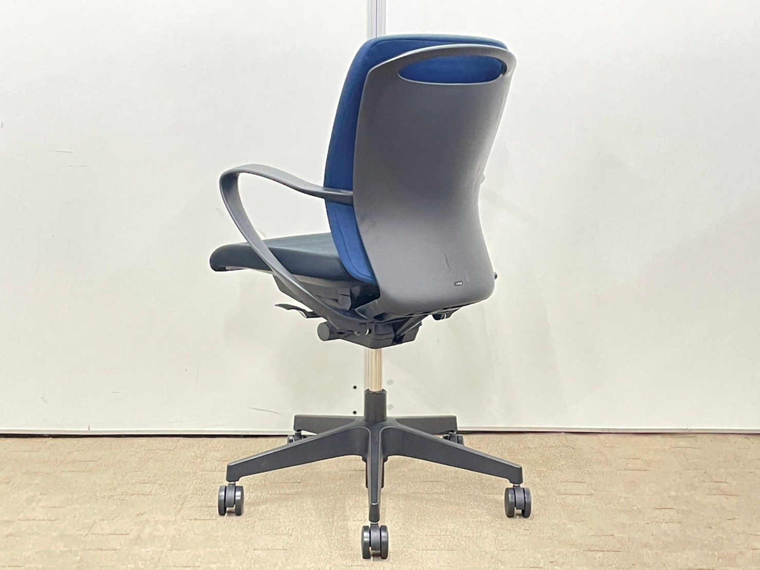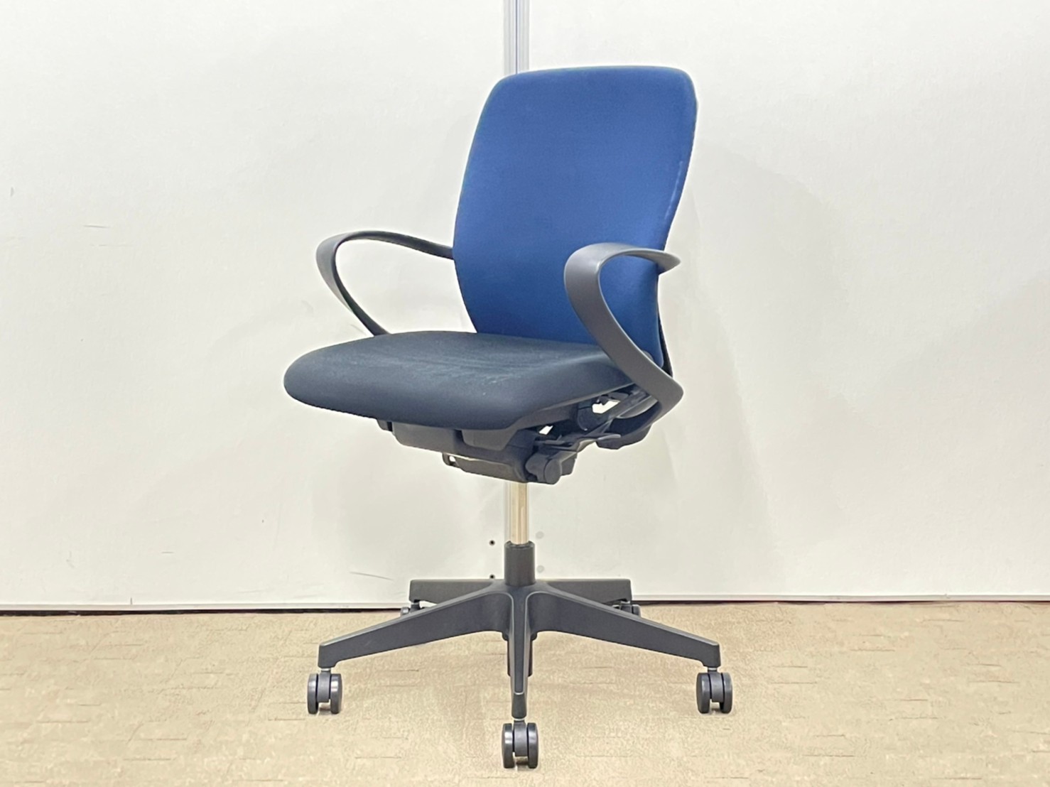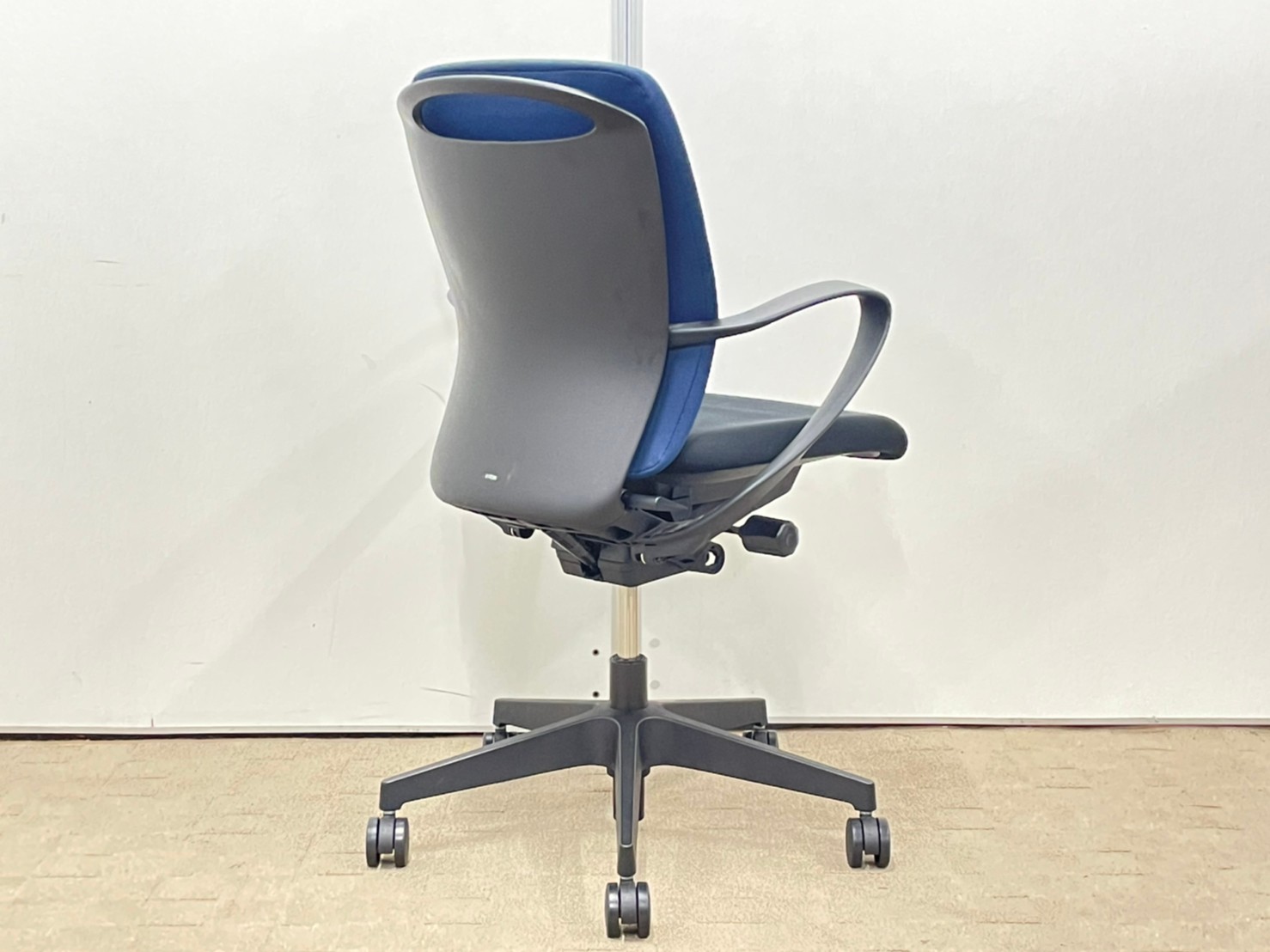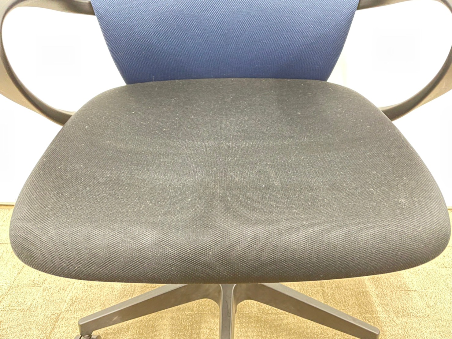 【背もたれ・座面使用感のすれあり】イトーキ製 人気高いフルゴシリーズ ブラック×ネイビーブルー 肘付きローバックチェア!!【関西倉庫在庫】