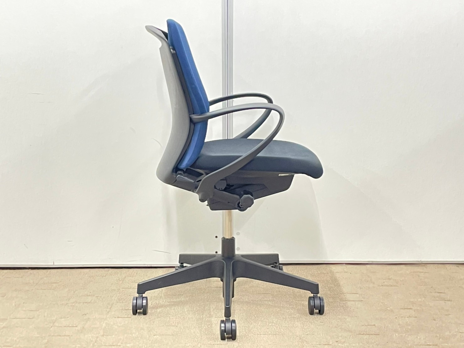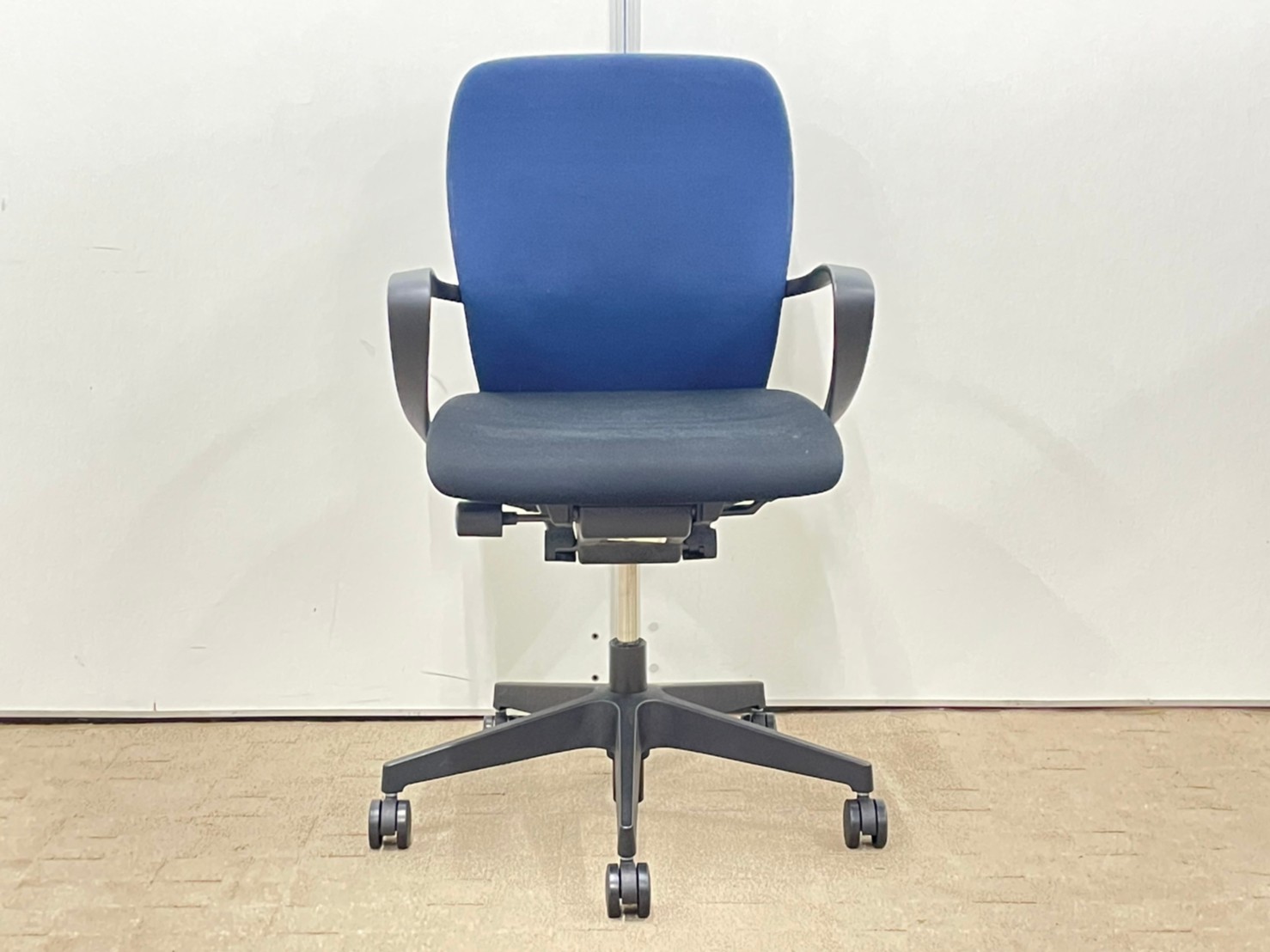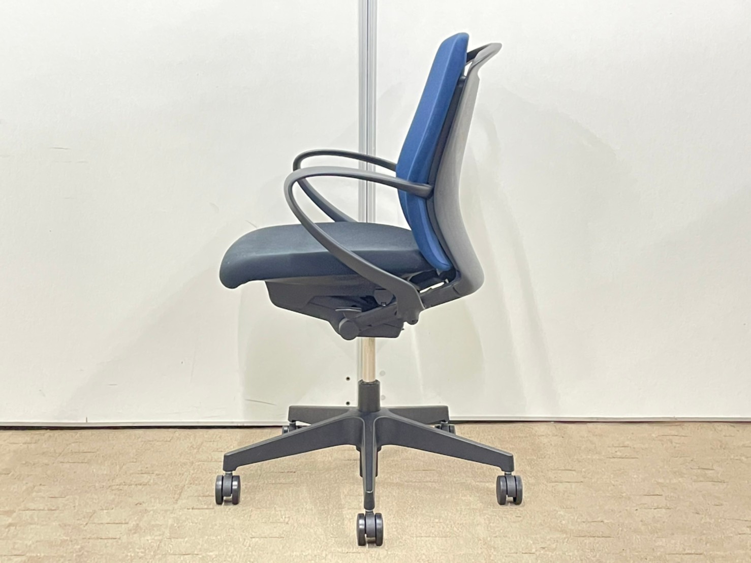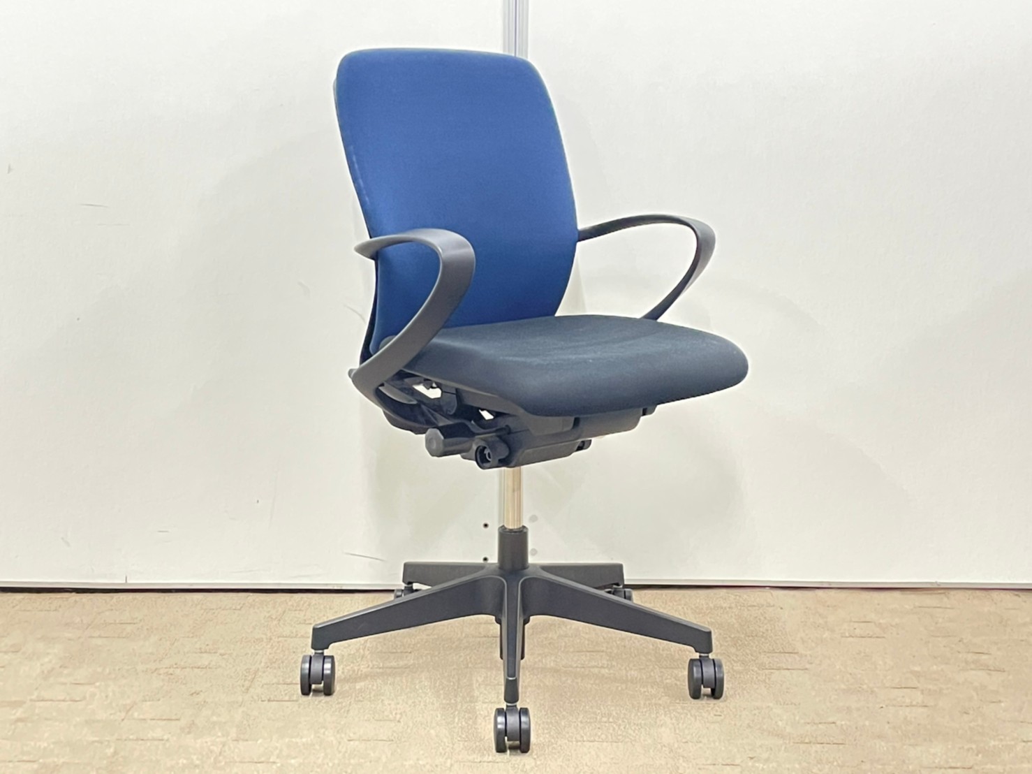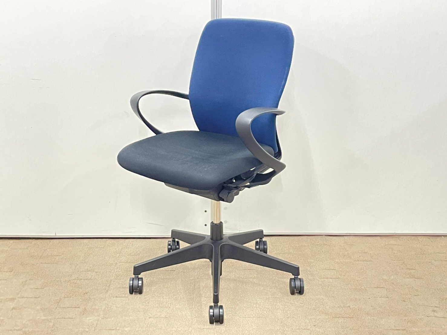 【背もたれ・座面使用感のすれあり】イトーキ製 人気高いフルゴシリーズ ブラック×ネイビーブルー 肘付きローバックチェア!!【関西倉庫在庫】