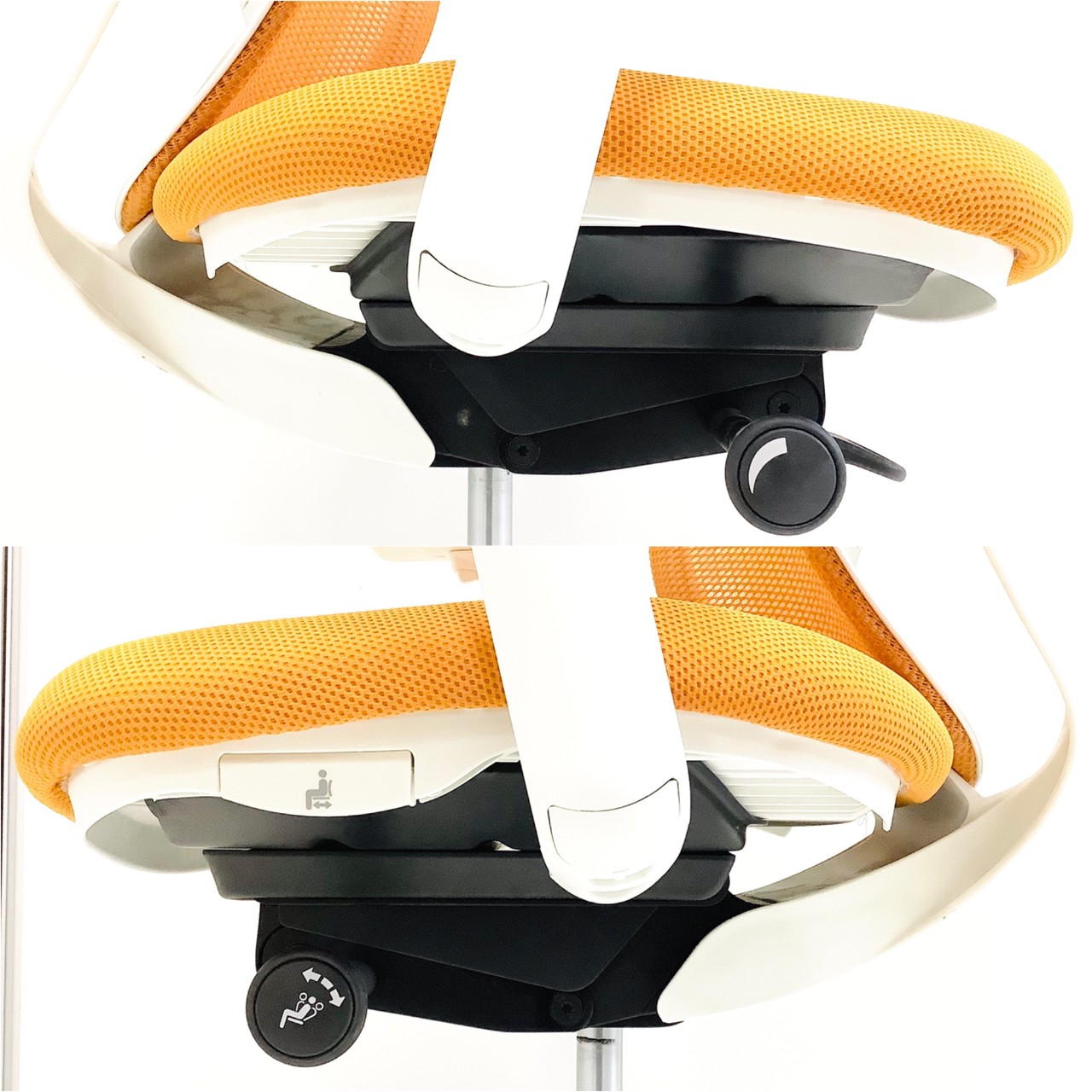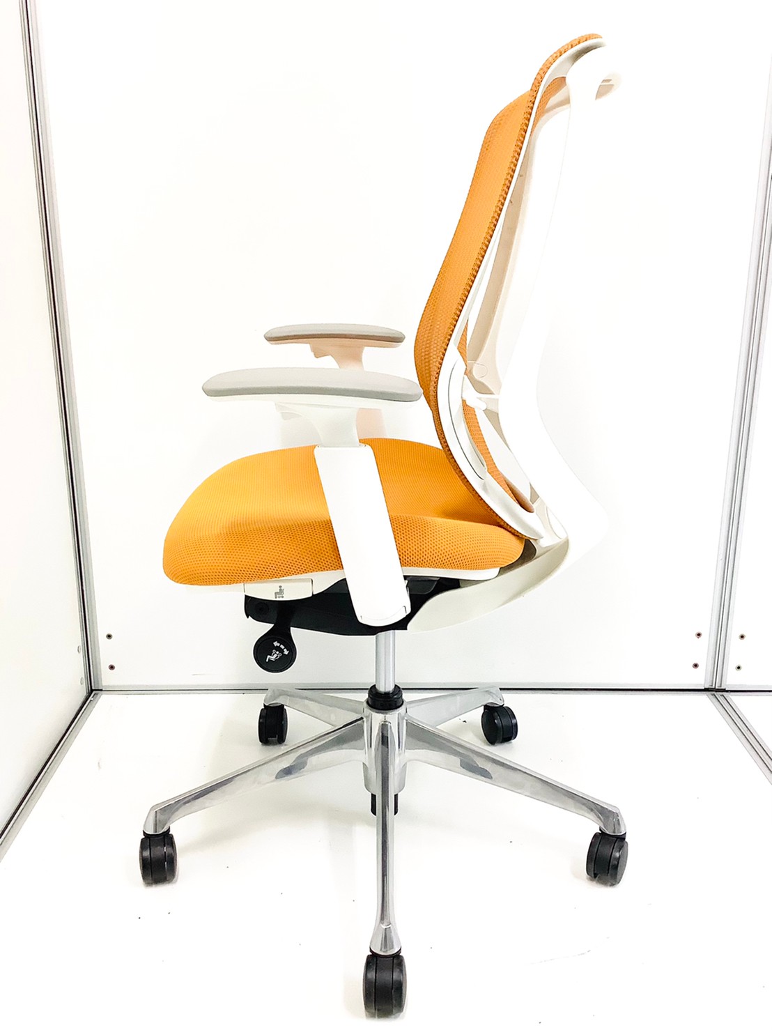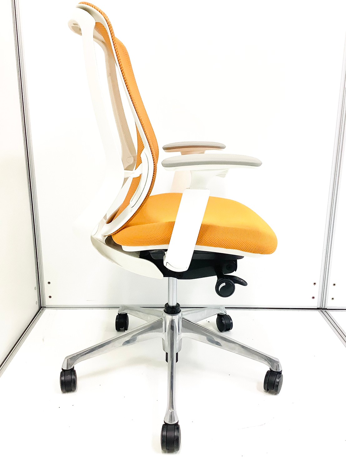 【在庫入替セール品!】【背のカーブを変えられる新感覚のオフィスシーティング!】■オカムラ シルフィーチェア 可動肘付 オレンジ ハンガー付 ホワイトフレーム ■新感覚のオフィスシーティング!【Okamrua Sylphy】