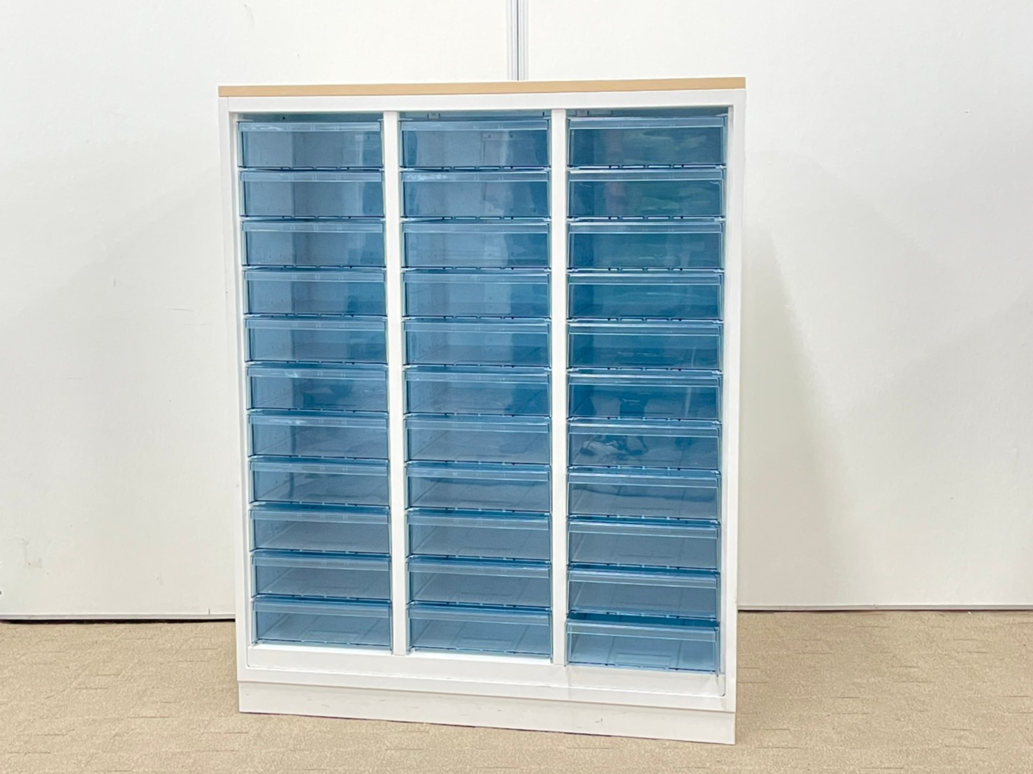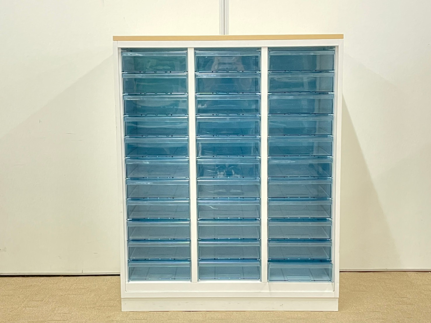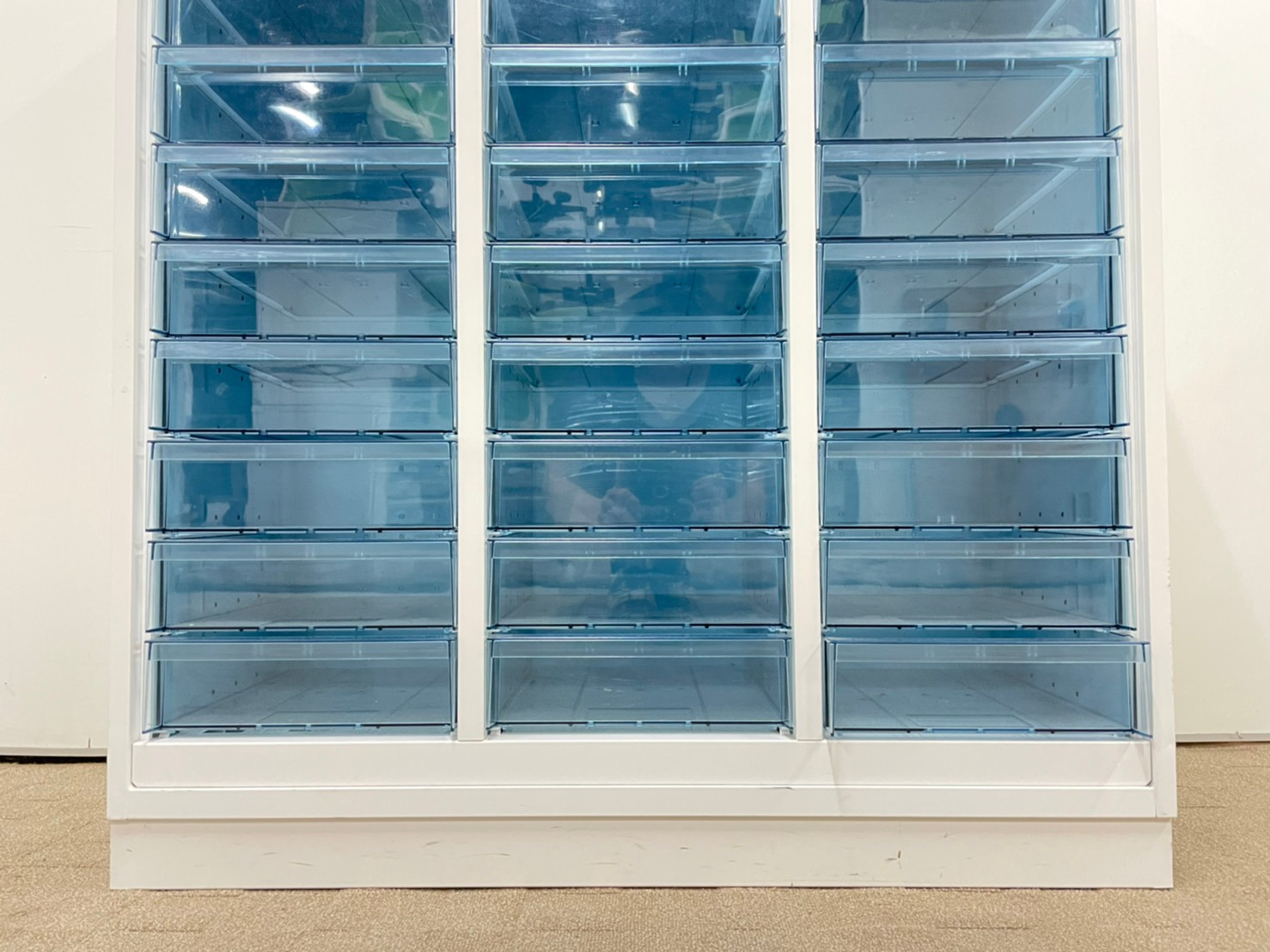 【書類・備品整理の必需品!】【珍しいクリトレが入荷!3列×深型9段タイプ!】■コクヨ(KOKUYO)製 エディア(EDIA)シリーズ クリスタルトレイ ローキャビネット H980㎜ ■3列×深型9段 ■ベース付 ■色:ホワイト