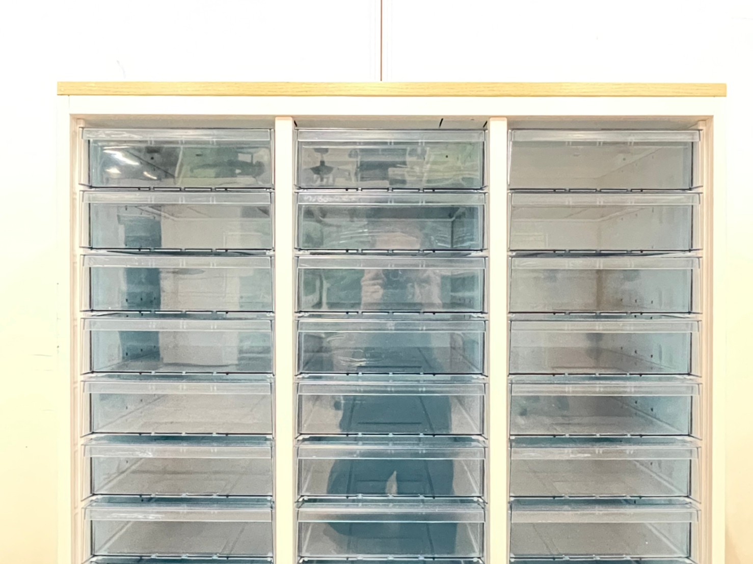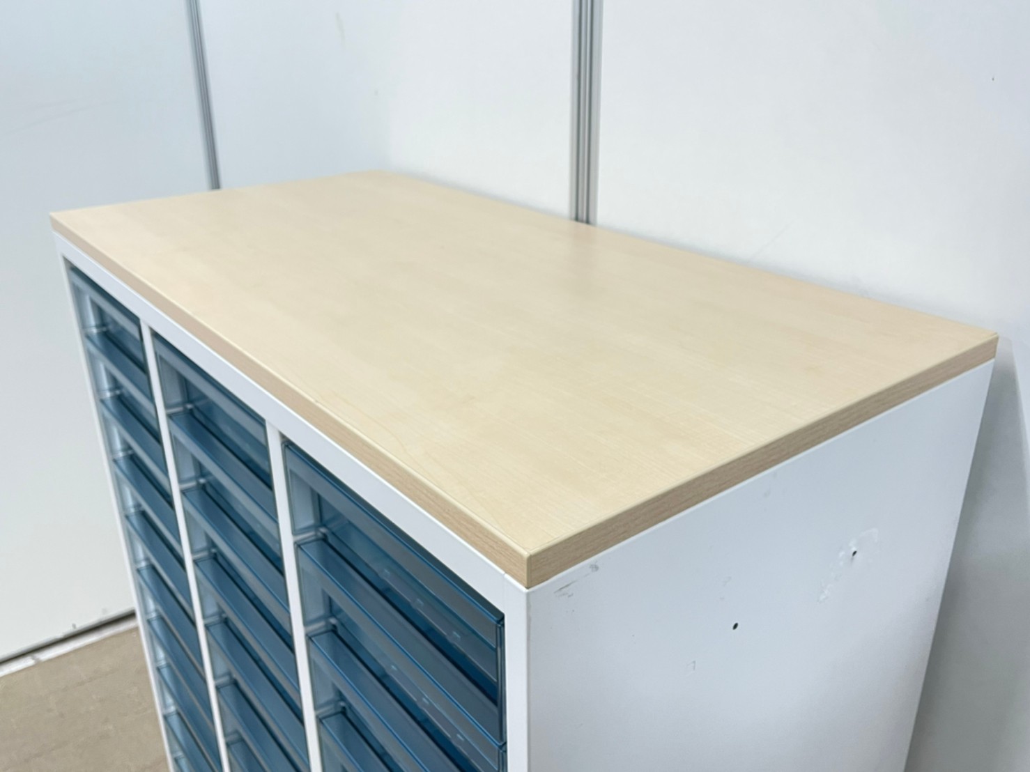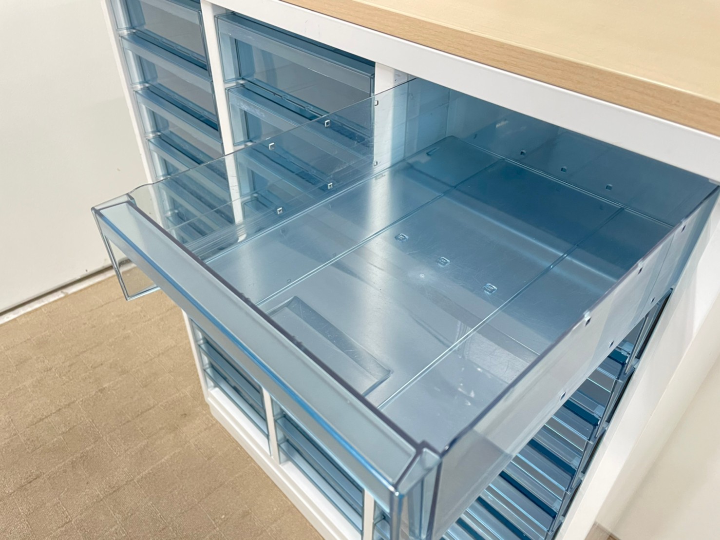 【書類・備品整理の必需品!】【珍しいクリトレが入荷!3列×深型9段タイプ!】■コクヨ(KOKUYO)製 エディア(EDIA)シリーズ クリスタルトレイ ローキャビネット H980㎜ ■3列×深型9段 ■ベース付 ■色:ホワイト