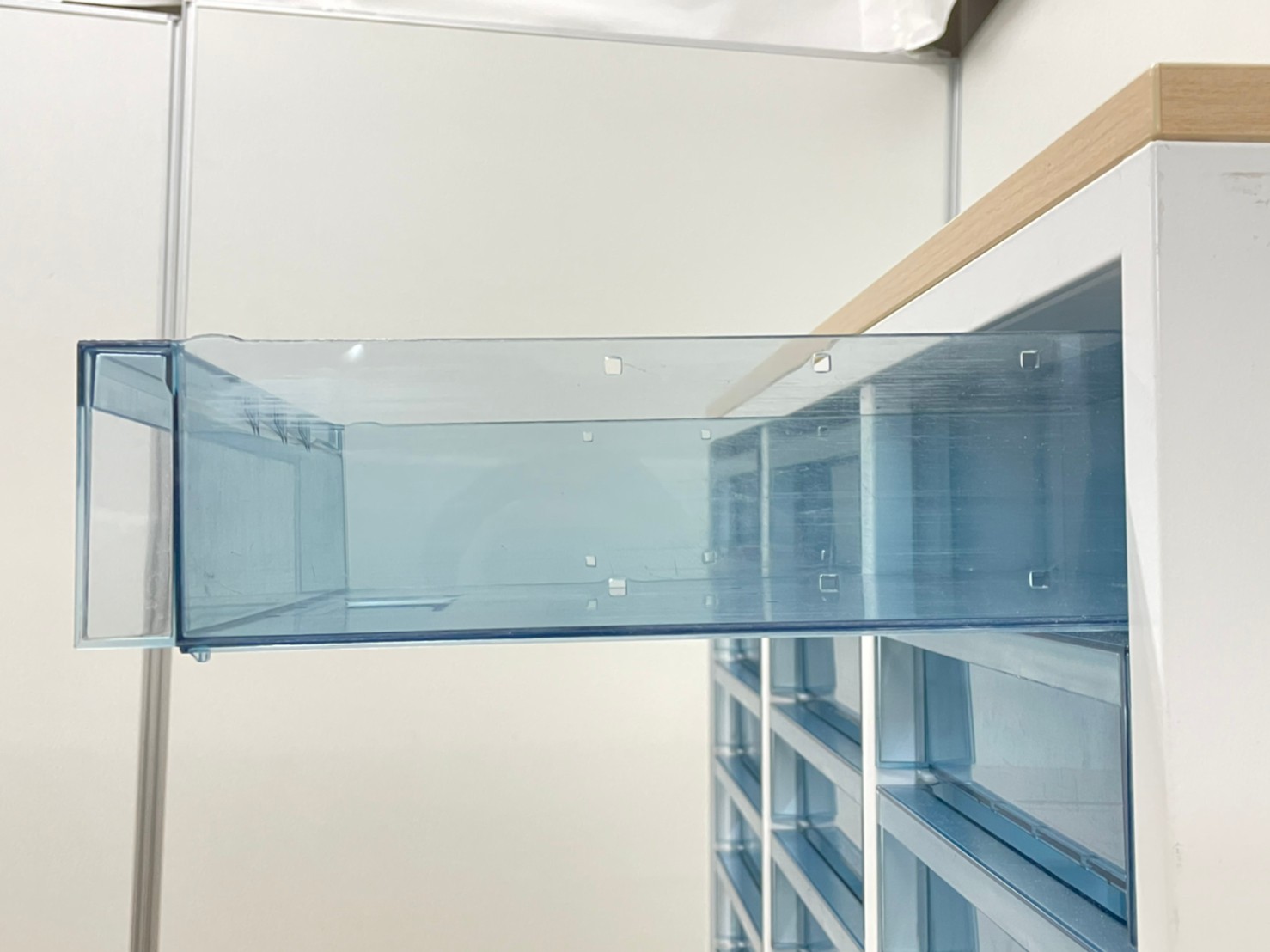 - 両開きタイプは扉が180度開き、通路の邪魔になりません。ラテラルタイプは引出しが限界まで出せ、出し入れ楽々。