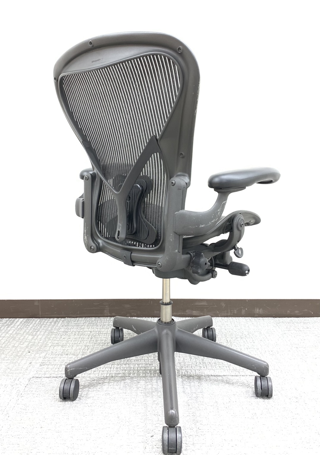 【★状態イマイチのためお安く!】■ハーマンミラー製 アーロンチェア Bサイズ 固定肘 ※キズあり・ランバーサポート無・昇降ガス圧弱めのためお安く!【訳あり特価品】