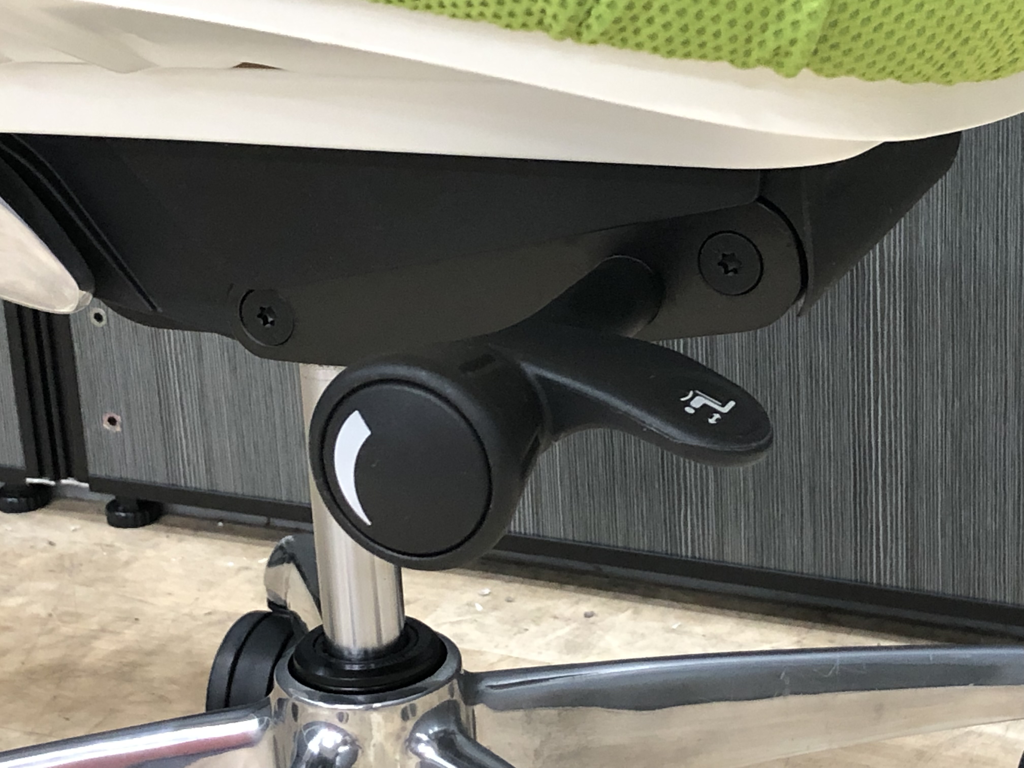 - 座面右下のレバーをスライドさせる「クイックスライドオペレーション」で、リクライニング反力を調整できます。強さの状態が視覚的にわかるため、直感的に操作がおこなえます。