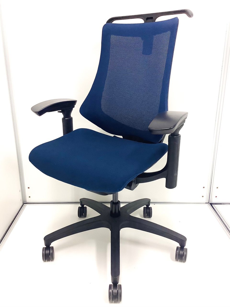【最先端のデザインに快適な座り心地!】■イトーキ製 エフチェア ネイビーブルー 可動肘 ハンガー付 ■【三次元フォルムが腰にフィット!】【倉庫在庫KRC】【RP】- 品川・三田店