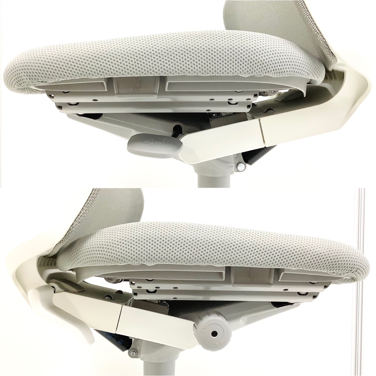 - 基本的な、高さ調節、リクライニング機能に加え、肘掛の高さ、肘あての前後・角度調節、座面奥行き調節など充実の機能を搭載。