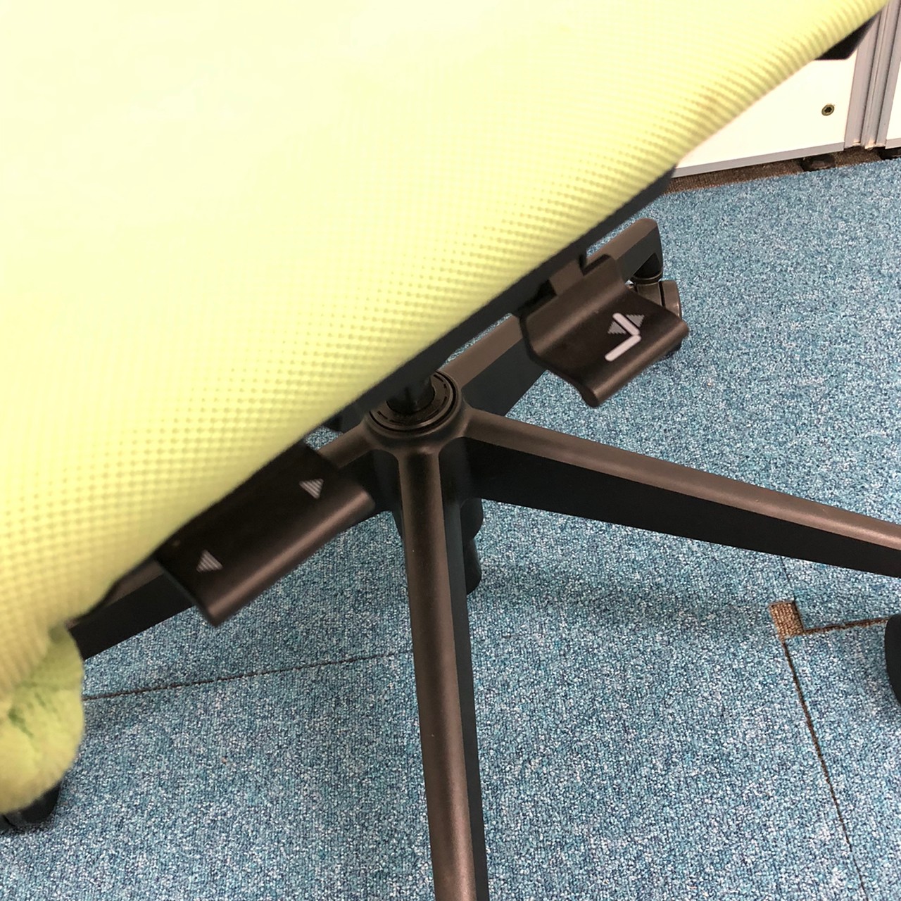また、個人的にオススメなのは『フルアジャスタブル肘』というアーム部分が斜め前に伸びていくタイプの肘置きを搭載したモデルです。高さを上げれば上げるほどパッドが前方に迫り出していくので、デスクワークの際にちょうど肘を置きたい場所に肘置きがきます。これがとても快適なので、ぜひ一度お試しいただきたいです!*エルフィチェアの肘パーツはフルアジャスタブル肘の他に、固定肘、アジャスタブル肘などがあります。