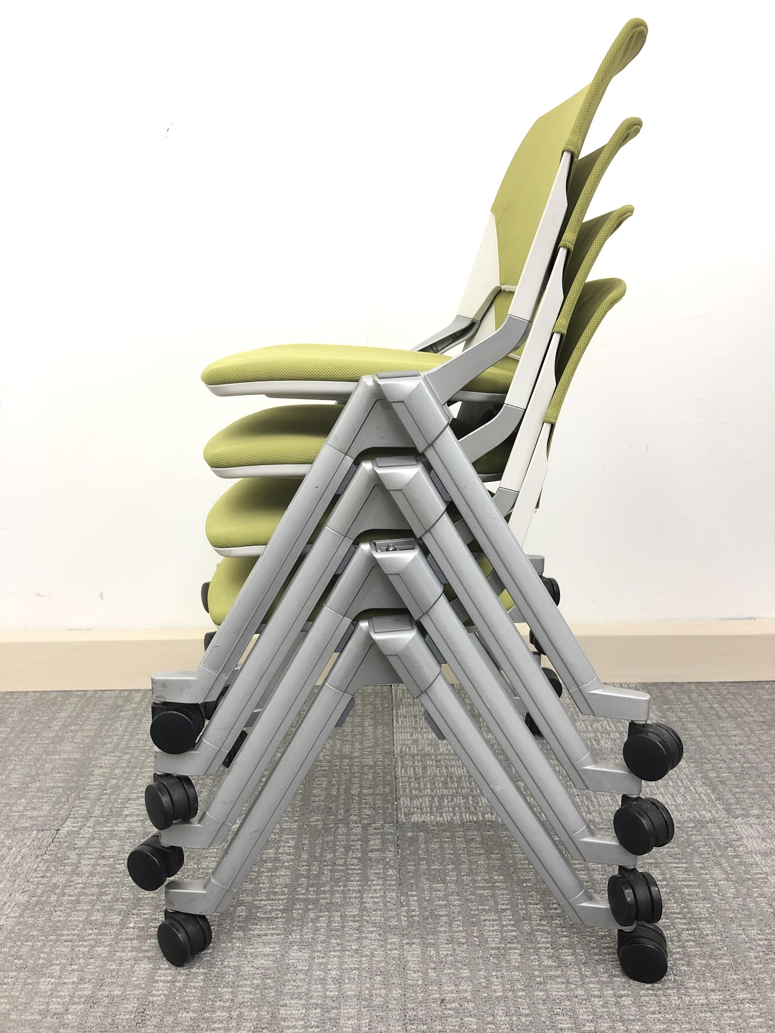 ■4脚1セット!! 【縦にも横にも重ねられる便利なチェア!】 座面のクッションが以外と厚めで、 長時間の会議でも疲れにくいです。- 春日部・越谷店