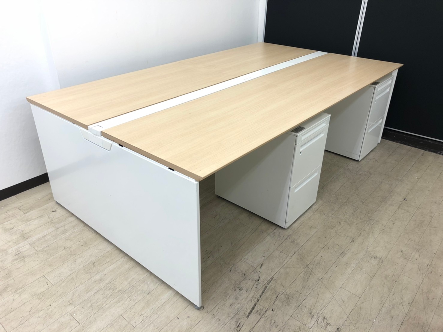 【倉庫在庫品】【W2400】/フリーアドレスデスク/オカムラ/フリーウェイ/天板ナチュラル/4名使用想定 中古 レイアウト 起業 移転 オフィスバスターズ東大阪店