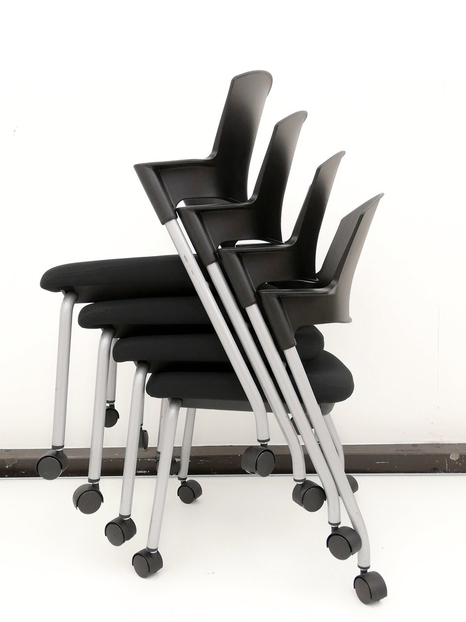 【セット商品(チェア×4脚)】【シンプルスマートなスタッキングチェア!分厚いクッションで長時間でも快適な座り心地!】/オススメ(おすすめ) /人気商品【弊社使用欄:A01037619】■スタッキングチェア 肘付ミーティングチェア ■固定肘 ■キャスター付 ■ブラック ■背面樹脂/コクヨ(KOKUYO/プロッティ