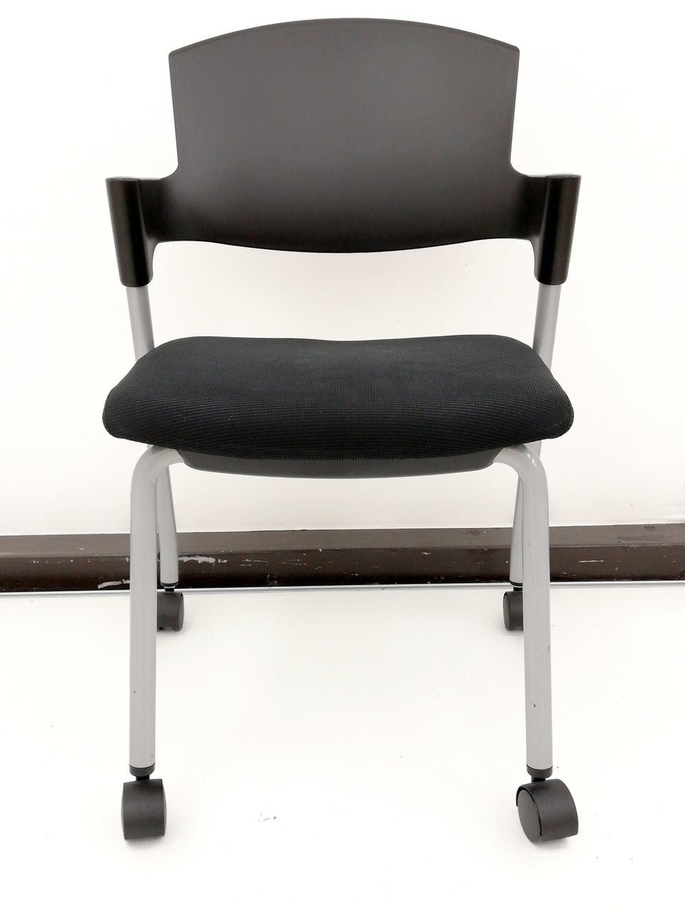 【シンプルスマートなスタッキングチェア!分厚いクッションで長時間でも快適な座り心地!】■スタッキングチェア 肘付ミーティングチェア ■固定肘 ■キャスター付 ■ブラック ■背面樹脂/コクヨ(KOKUYO/プロッティ