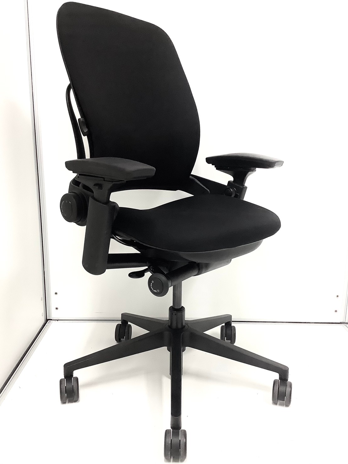 【限定1脚】ワークチェア アームレスト付 可動肘 ブラックフレーム オススメ(おすすめ) 大人気 ・Steel case/スチールケース ・Leap-v2/リープV2 ※横浜本店撮影画像※