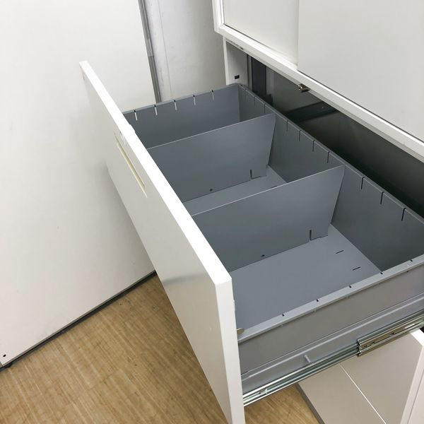 - 一部不具合ありそ引出の開閉不可、施錠不可、棚板無しといったの書庫の本来の効用を果たすための機能以外の一部が使用不可(例、扉、引出の開閉がしづらいなどがある。 )