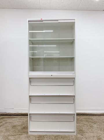 使い勝手抜群の上下書庫セット!上段オープン+下段3段ラテラル仕様! ■オカムラ/レクトライン/ホワイト