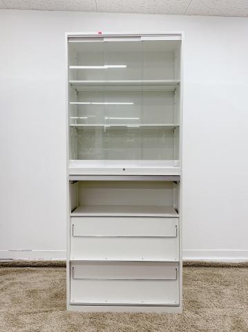 オカムラ製の上下書庫セット(3段雑誌架+ガラス引き違い)のレクトラインシリーズが入荷致しました!!