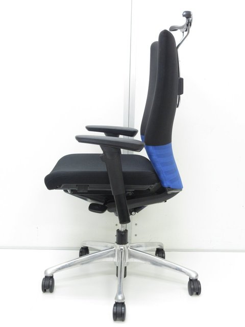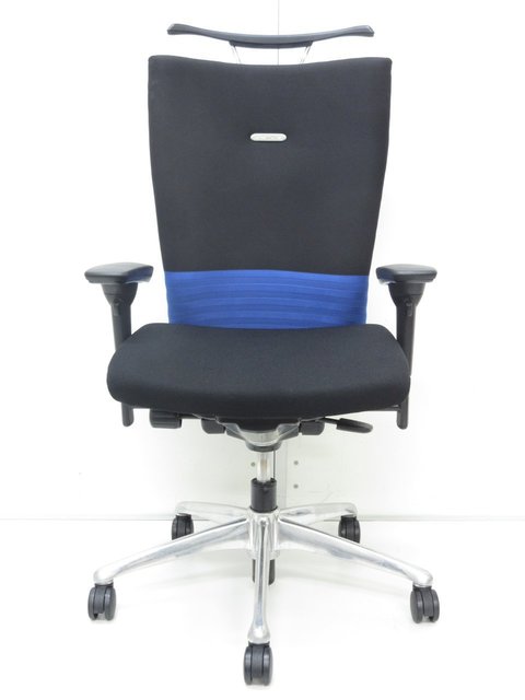 【オフィスの執務室や会議室にお勧めです!】オカムラ製/フィーゴ/ブラック×ブルー◆ちょっといいチェアをお探しの方へ!【TH】【倉庫在庫品】