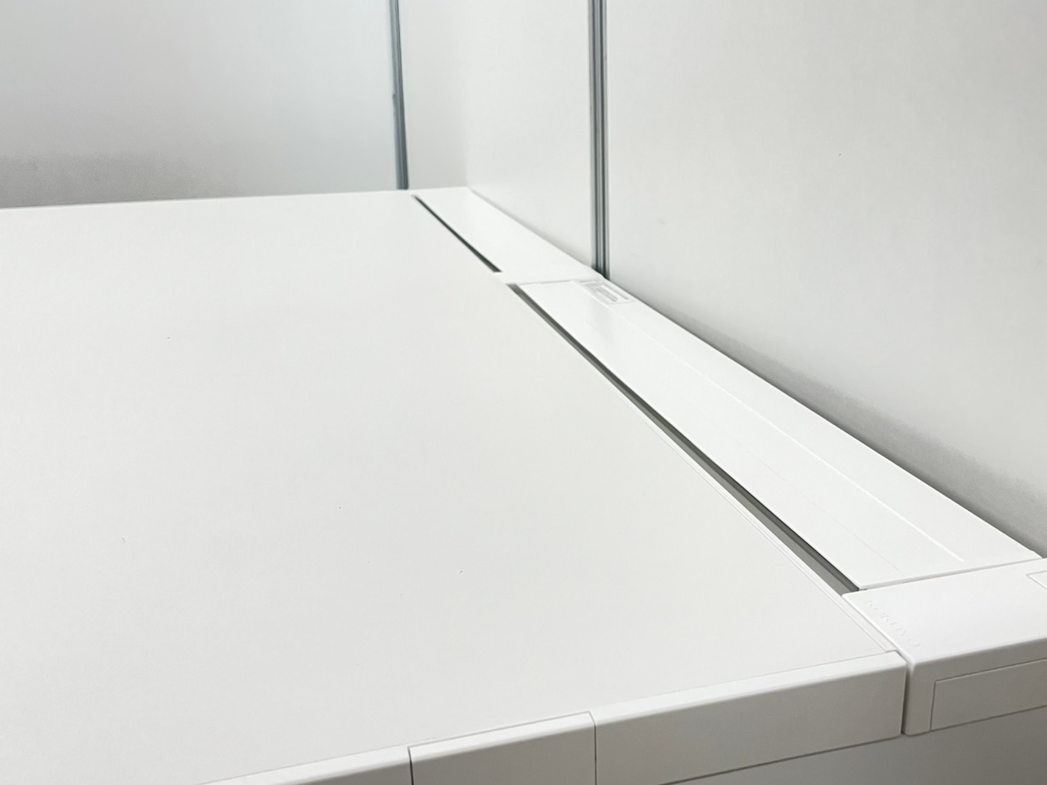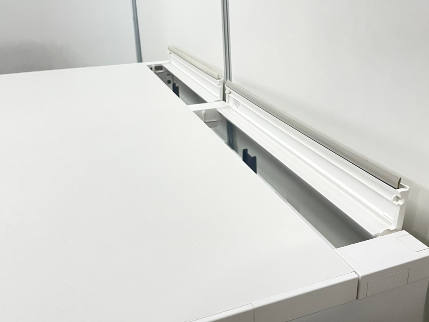 - OAタップや余長コードをコードダクトに収納できます。開閉式の配線カバーで、配線作業が簡単です。