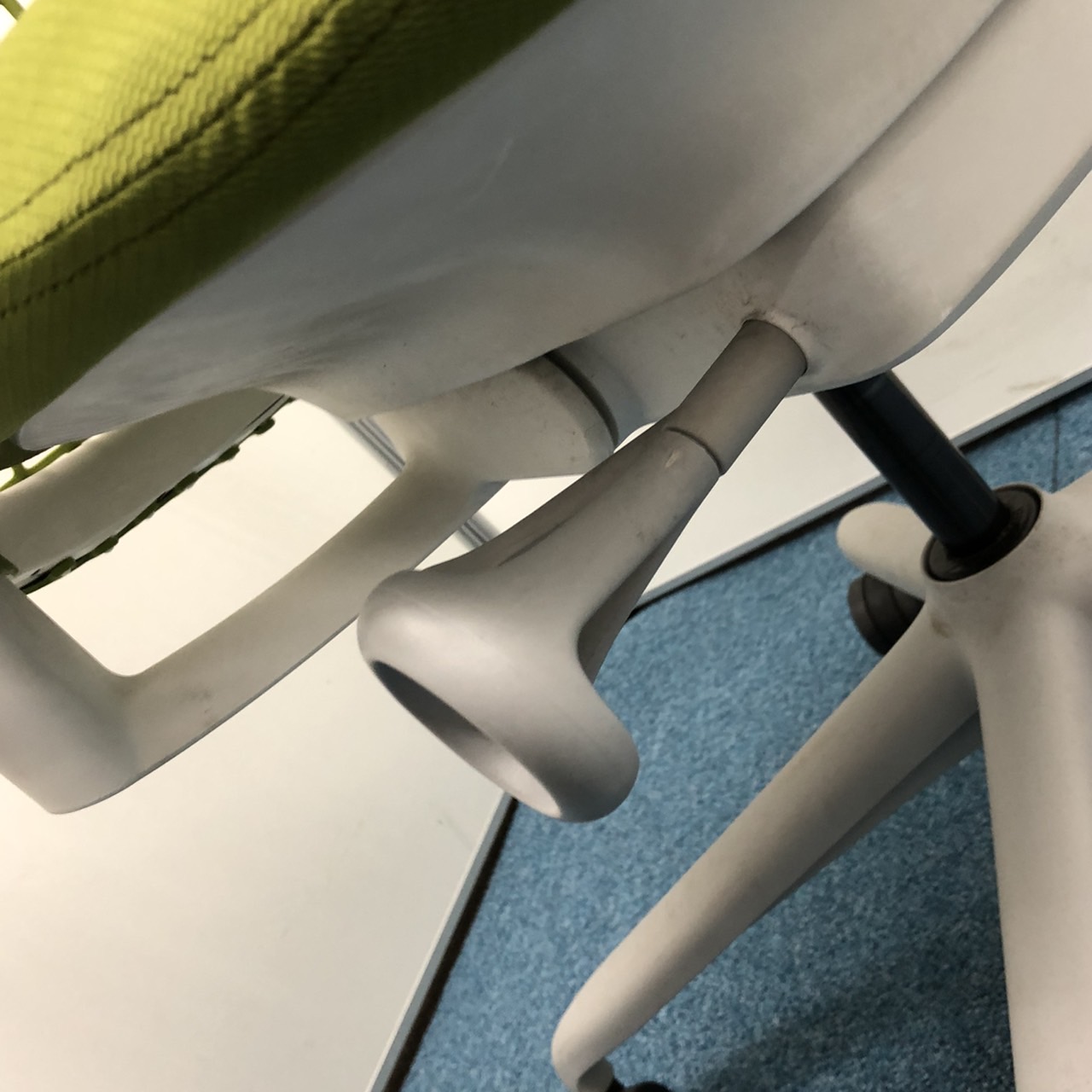 - 座ったまま、レバー操作一つで、簡単に座面を前傾できます。前傾姿勢を取ることが多いデスクワーカーに最適です。