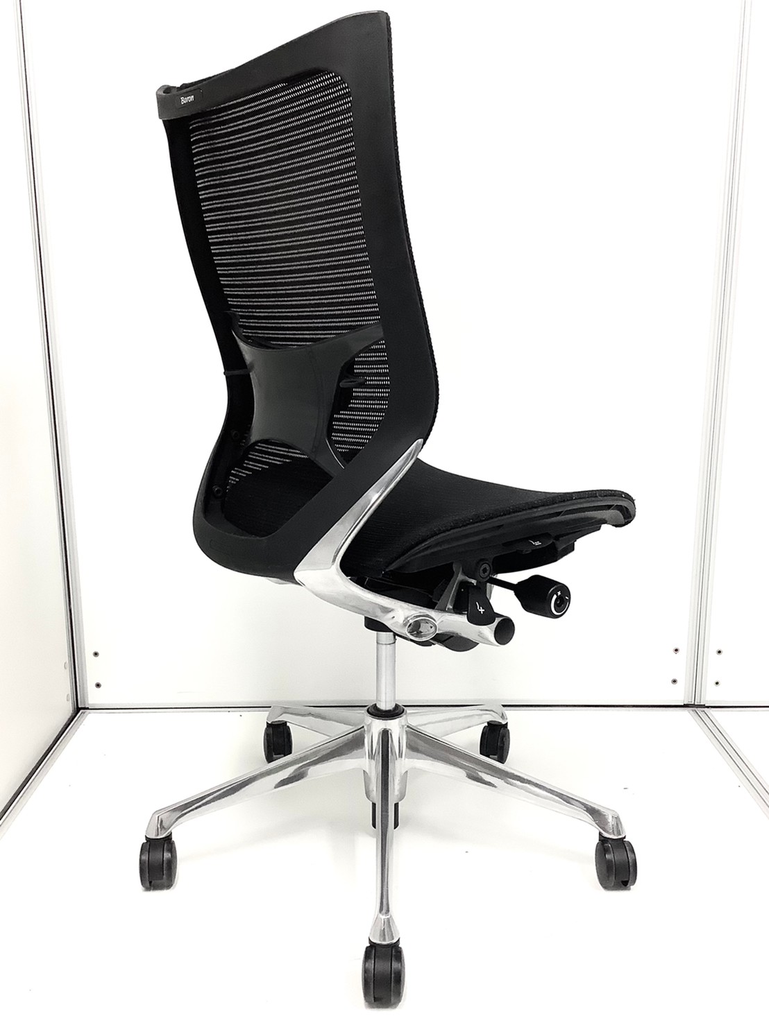 あまり注目されませんが、ラインナップのバリエーションの多さもバロンの良いところです。高級チェアには、アームレストがあるものが多いのですが、バロンは快適な座り心地はそのままにアームレストがないタイプを選べます。スペースの限られている事務所やご自宅で使う場合、アームレストがない方がよい業務をされているお客様にも選ばれています。"