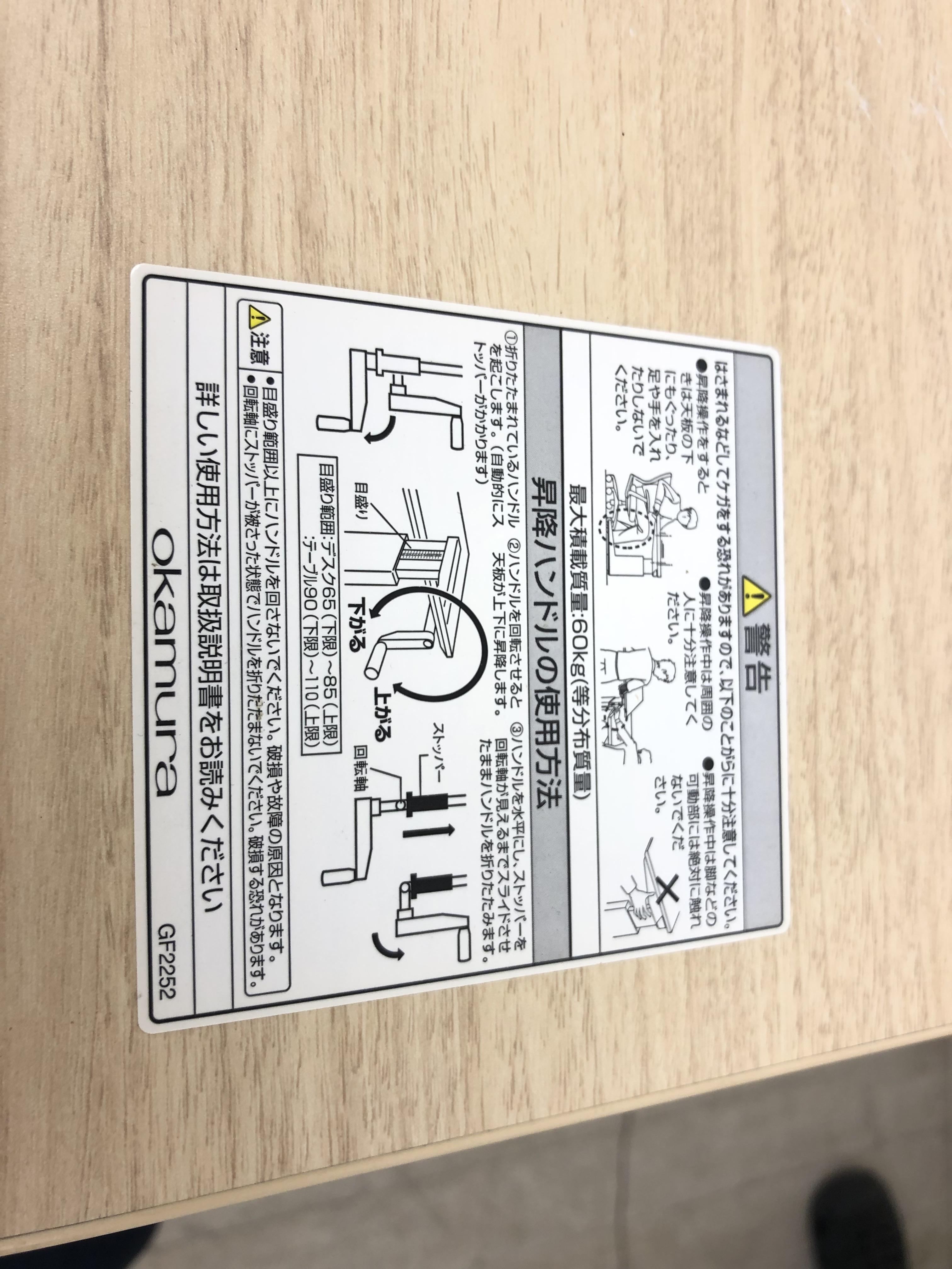 こちらの昇降デスクは電動ではなく、手動のタイプとなります。